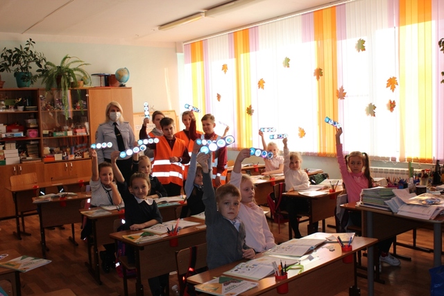 В рамках 5-го этапа «Декады дорожной безопасности детей» сотрудники ГИБДД совместно с отрядом ЮИД и педагогической общественностью напомнили школьникам о пользе световозвращающих элементов.