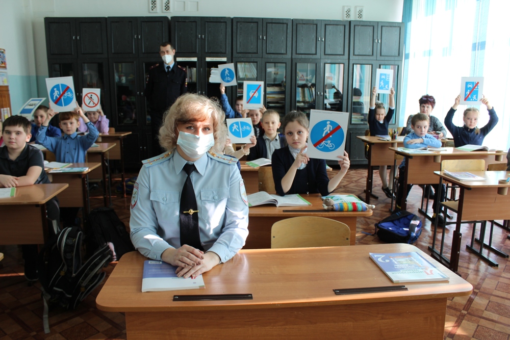 Майор полиции разъяснил школьникам правила безопасного поведения вблизи проезжей части, и наиболее часто встречающие опасные «дорожные ловушки». Автоинспектор объяснил детям, что переходить дорогу нужно только пешеходным переходам. Кроме того при переходе дороги необходимо остановиться, осмотреться по сторонам, и убедившись, что автомобили остановились и Вас пропускают, после этого переходить проезжую часть. Также предупредил, что недопустимо при переходе через дорогу слушать музыку в наушниках или разговаривать по мобильному телефону. Это отвлекает, и пешеход может не успеть заметить приближающуюся опасность. К тому же ни в коем случае нельзя внезапно выходить, выбегать на проезжую часть, в том числе и на пешеходный переход. Также Вадим Орлов рассказал ученикам начальных классов, что такое безопасный маршрут и для чего нужны световозвращающие элементы на одежде и как они помогают пешеходам в тёмное время суток.