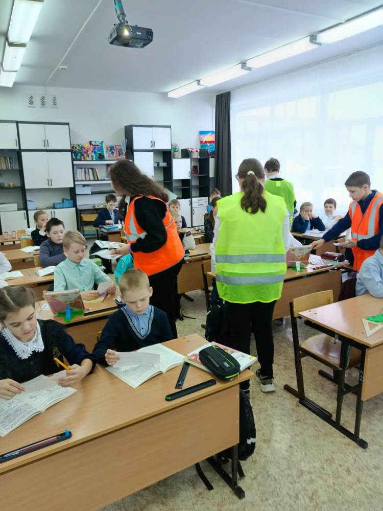 Активисты отряда ЮИД СОШ № 12 подготовили буклеты, в которых отразили значимость применения световозвращающих предметов юными пешеходами. Ребята пришли к младшим товарищам, и вручили каждому школьнику буклет, рассказав о важности носить яркую одежду и обозначать себя полезными аксессуарами.