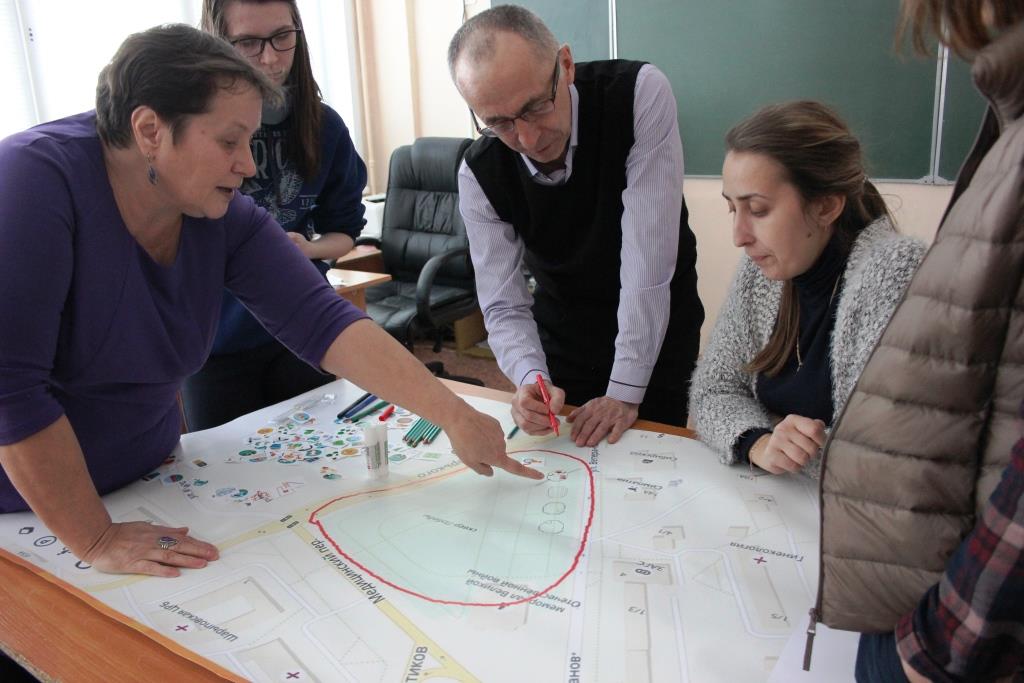 Ну и завершающим, третьим этапом, стала демонстрация итогов группового обсуждения. Представители от каждой группы высказали свои пожелания и идеи по благоустройству каждого из предложенных общественных пространств.
