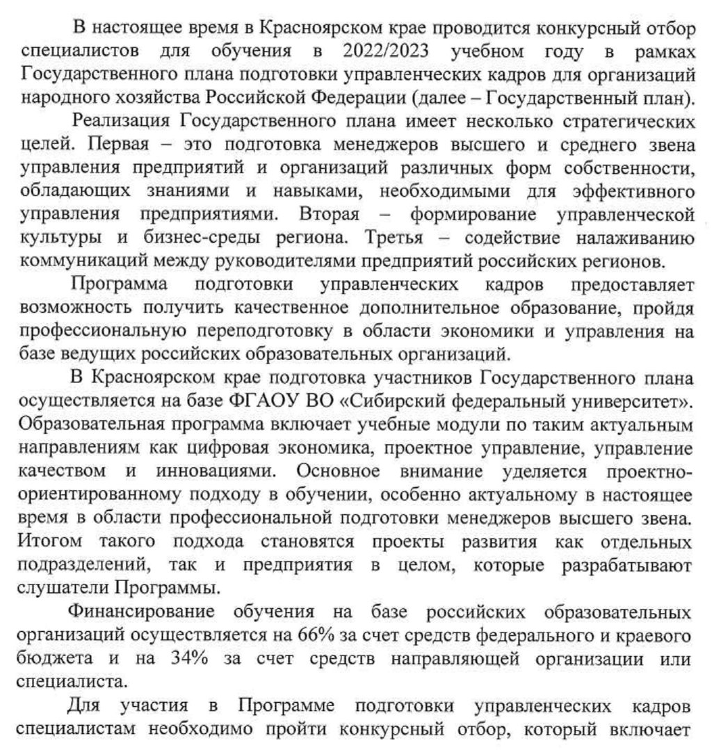 О конкурсном отборе для обучения в рамках Государственного плана подготовки управленческих кадров