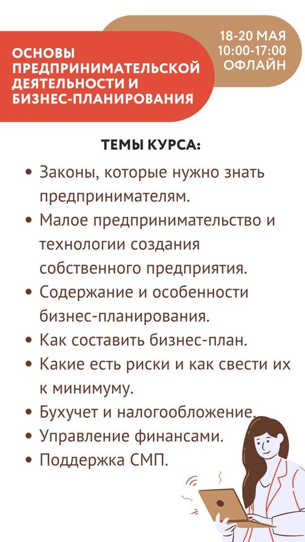 В течение трёх лет здесь обучились основам предпринимательской деятельности и бизнес-планирования 736 жителей края. Ближайший курс, который подходит будущим кандидатам на получение гранта, пройдёт с 18 по 20 мая 2022 года по адресу: г. Красноярск, ул. Белинского, 5. Научит составлять бизнес-план и расскажет всё о налогах для предпринимателей Анжела Дьякова, сертифицированный тренер по обучающим программам, одобренным Минэкономразвития России.