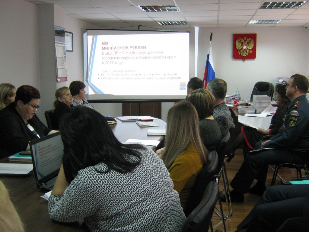 25.12.2017 г. на расширяемо аппаратном совещании у главы города Шарыпово были подведены итоги реализации в городе Шарыпово программы «Формирование комфортной городской среды» в 2017 году. Докладчиком выступила директор МКУ «СГХ» Ирина  Шайганова, содокладчиком – начальник отдела спорта и молодежной политики Людмила Когданина.