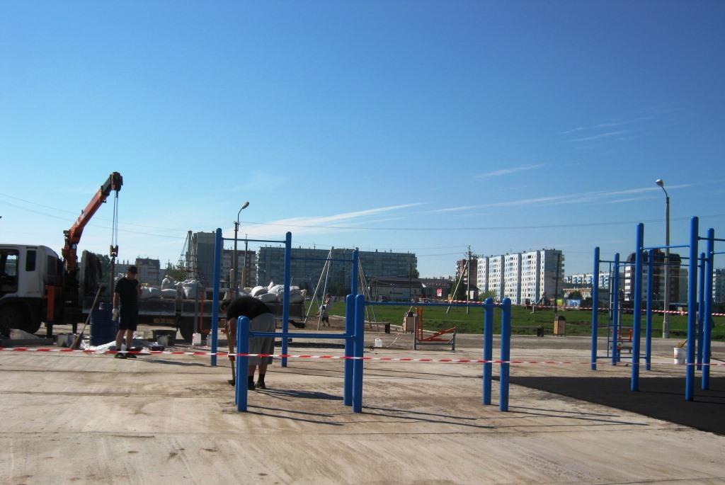 С 7 июня, как только установилась сухая погода, начались работы по укладке резинового покрытия на воркаут-площадке за спорткомплексом Сибирь. Работы ведет шарыповское предприятие ААСтрой (руководитель Алексей Торговец). Строители укладывают порядка 500 кв.метров покрытия из резиновой крошки, обеспечивающего травмобезопасность занимающихся на турниках людей. Технология укладки покрытия предусматривает очистку бетонного основания от пыли, грунтовку, после высыхания наносится клеевая основа, на которую укладывается раствор с резиновой крошкой. Поэтому для качественного результата необходима сухая погода хотя бы несколько дней подряд. Ее и ждали строители.
