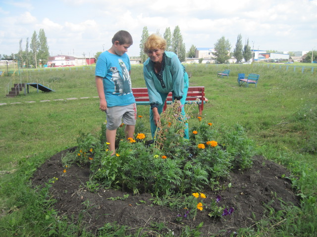 Своими главными помощниками Екатерина Викторовна называет супруга, Юрия Григорьевича, и внука Сережу. Также она благодарна за поддержку работникам управляющей компании «Инновация», которые завезли землю для клумбы и помогли с высадкой саженцев.