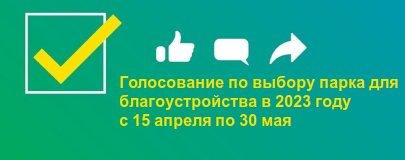 Ссылку на голосование, какие объекты на него вынесены, а также подробности информации по волонтерской поддержке можно найти на официальном сайте города Шарыпово http://www.gorodsharypovo.ru, под баннером «Голосование по выбору парка для благоустройства в 2023 году» на главной странице сайта (см. рисунок).