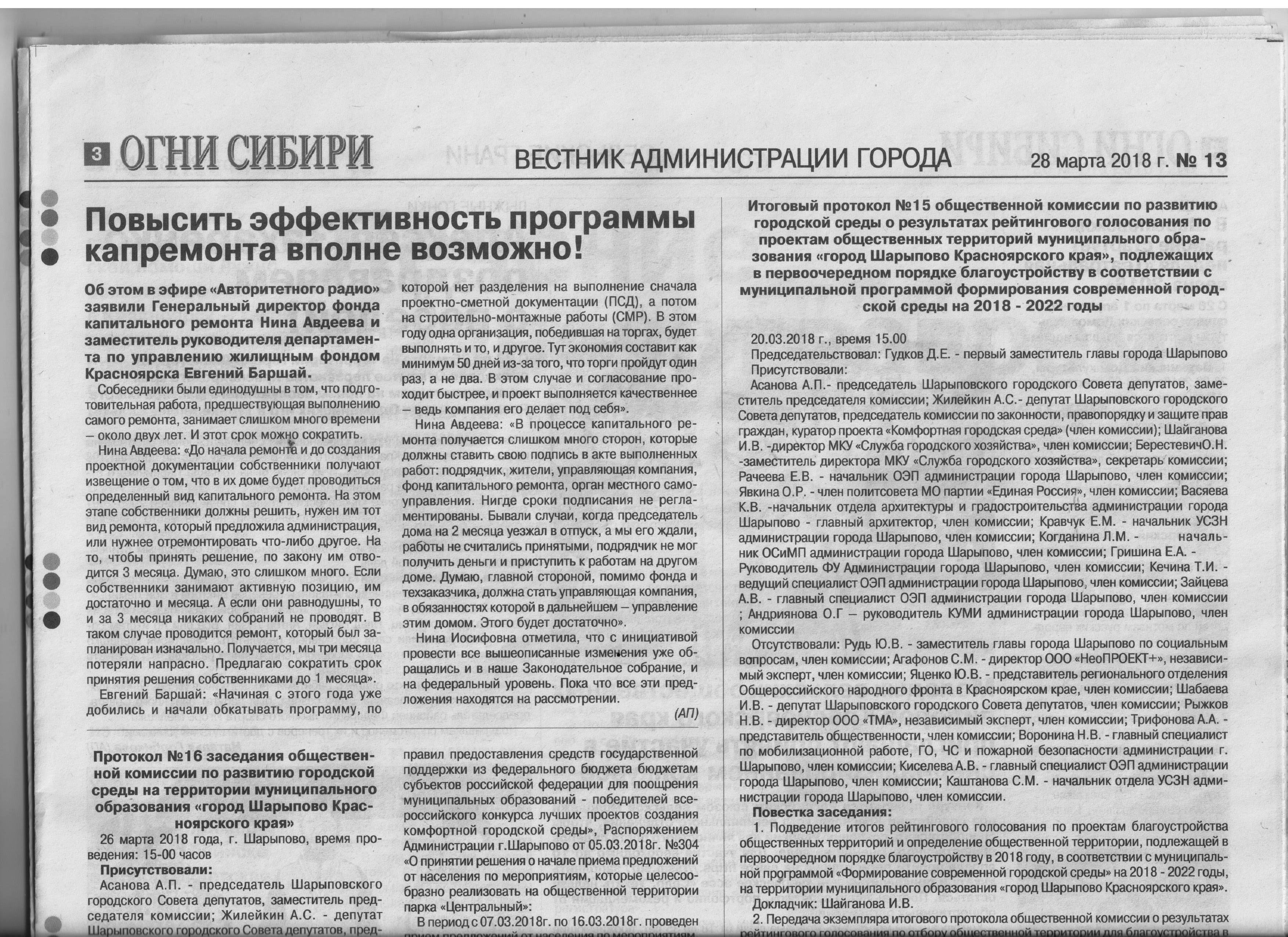 - Повысить эффективность программы капремонта вполне возможно! (газета "Огни Сибири" №13 от 28.03.2018 г)