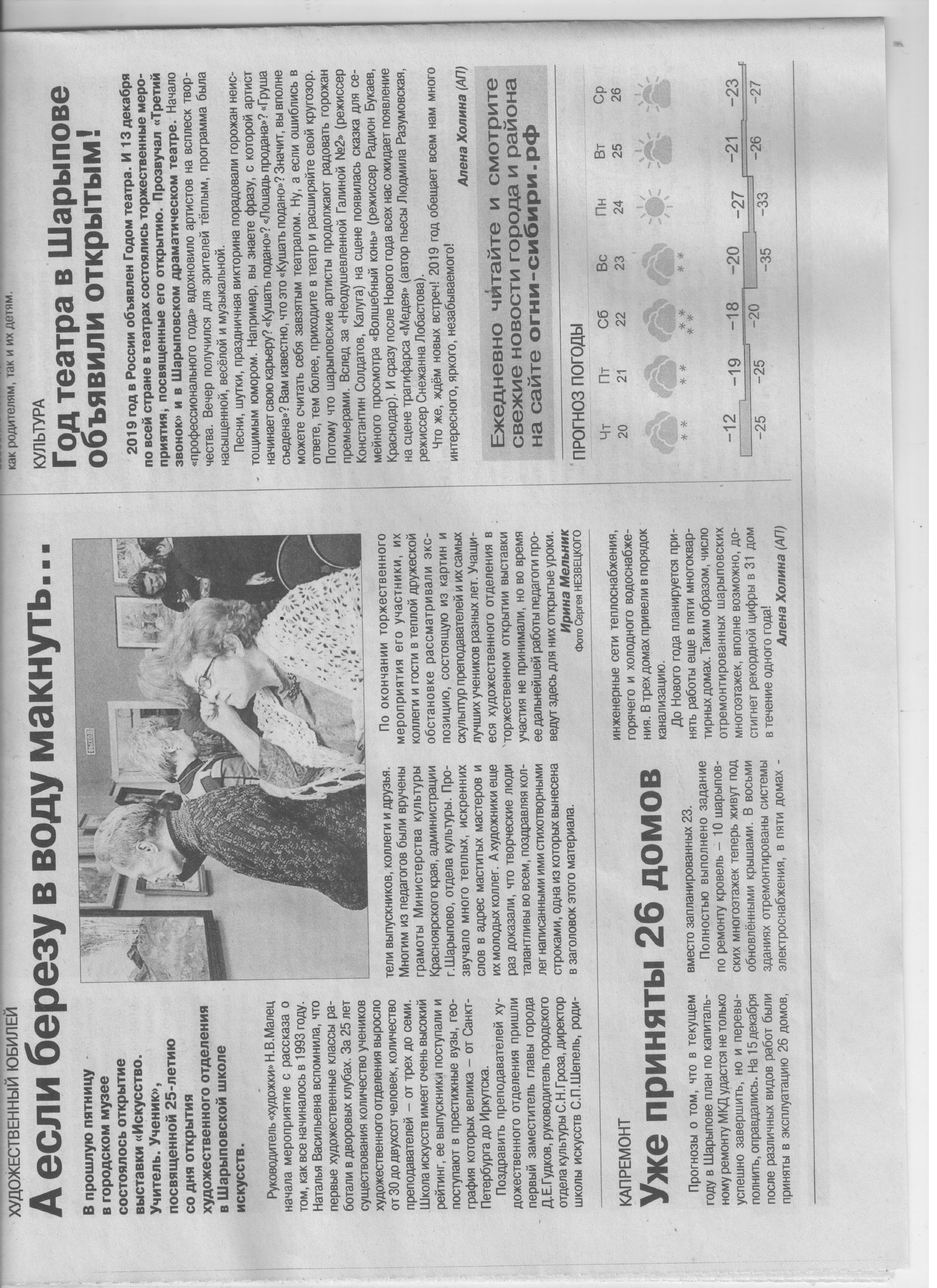 - Уже приняты 26 домов (газета "Огни Сибири", №51 от 19.12.2018 г.)