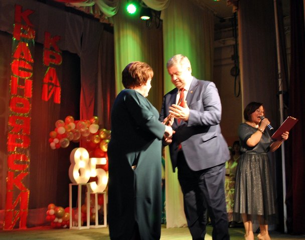 Также Наталья Петровская и председатель Шарыповского городского Совета Анна Асанова вручили почетные знаки  к юбилею края  Ивану Сергеевичу Рудакову, Сергею Анатольевичу Краснолуцкому, Нелли Васильевне Несмеяновой, Василию Михайловичу Ковалю, Виктору Павловичу Похабову, работнику филиала «Березовская ГРЭС» ПАО «Юнипро»  Константину Анатольевичу Данилину и работнику АО «Разрез «Березовский» Андрею Юрьевичу Негину.  Грамотами от Совета муниципальных образований в честь юбилей края наградили сотрудников муниципальных структур Людмилу Когданину, Наталью Ильиных, Людмилу Латышеву и Галину Гришину.