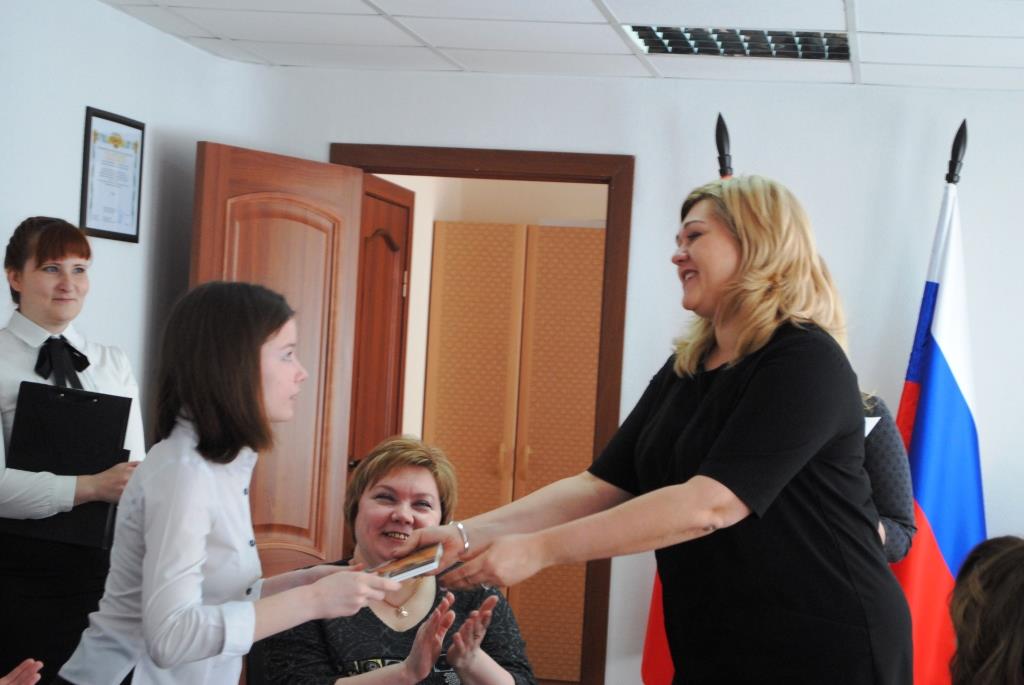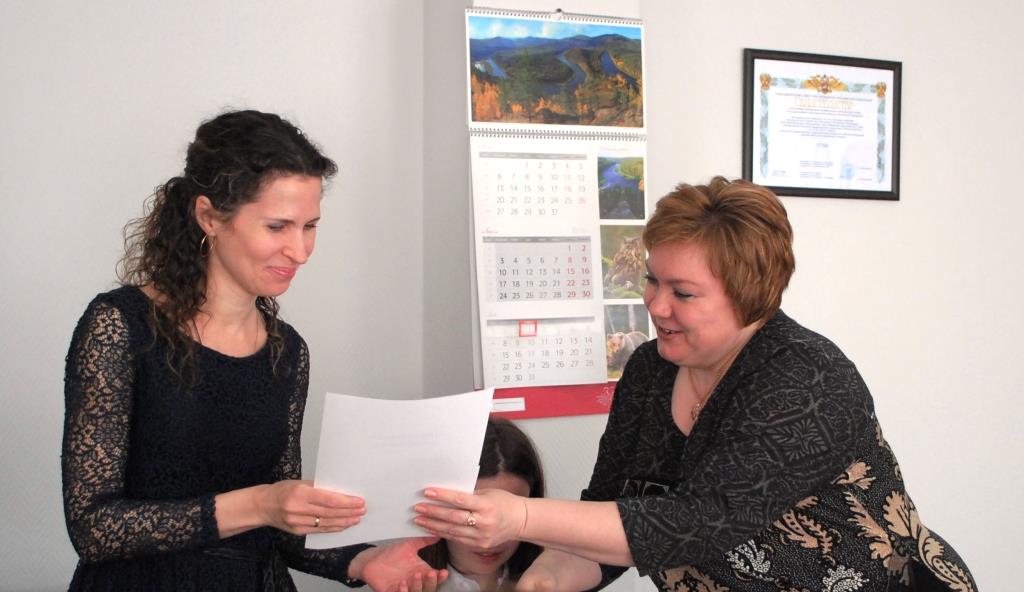 3 мая в кабинете главы города Наталья Петровская искренне поздравила всех отличников «Тотального диктанта» и вручила им сертификаты об оценках, а также подарок от организаторов акции: сертификаты на право бесплатно пользоваться лицензионными электронными версиями словарей по русскому языку. Особых слов одобрения удостоилась единственная школьница, оказавшаяся среди победителей – ученица восьмого класса школы №8 Мария Назарова. Она получила дополнительный подарок от заместителя главы города Юлии Рудь – альбом произведений сибирских художников.
