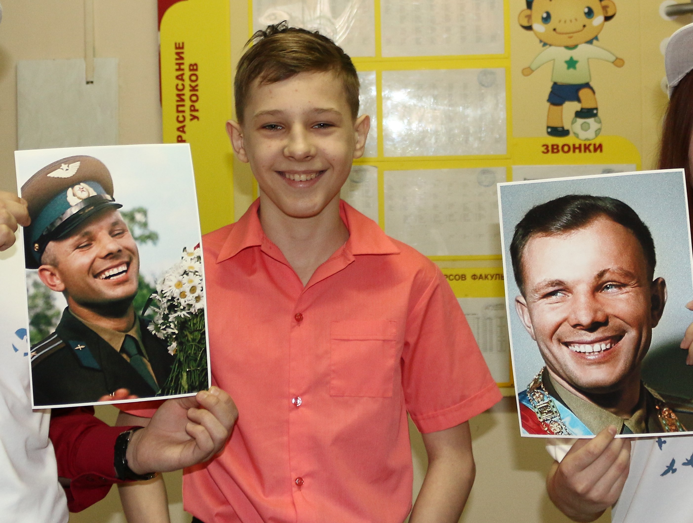 Принять участие в мероприятии можно было и онлайн: всех пользователей социальных сетей приглашают сделать коллаж с Юрием Гагариным и опубликовать его с рассказом об известных вам космических победах в наши дни.