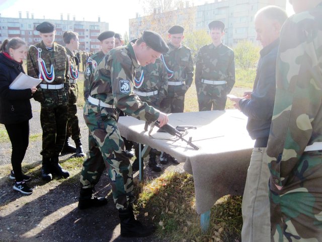 Сегодняшние учащиеся, а завтра – защитники нашей Отчизны, продемонстрировали своё умение и навыки в следующих дисциплинах: строевая подготовка, подтягивание на перекладине, метание учебной гранаты, разборка и сборка автомата Калашникова, стрельба из пневматической винтовоки по биатлоническим мишеням, военизированная эстафета, бег на 100 и 2000 метров.