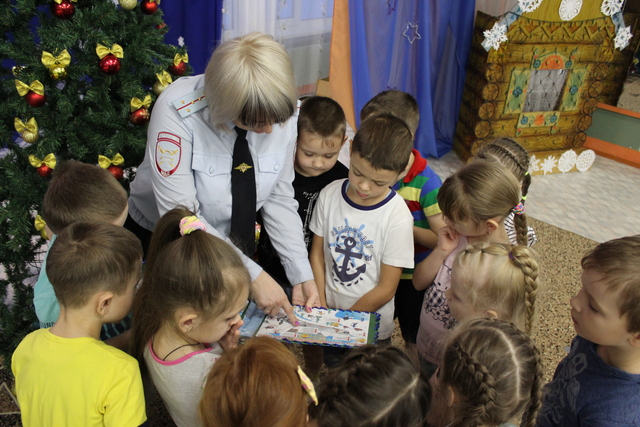 Вместе с инспектором дошкольники повторили правила безопасного поведения на дорогах, автоинспекторы рассмотрели с ребятами самые трудные ситуации - так называемые «дорожные ловушки», которые подстерегают пешеходов зимой, разъяснили, где правильно кататься на горках и коньках, как правильно переходить дорогу и какие опасности подстерегают их на проезжей части во дворе.