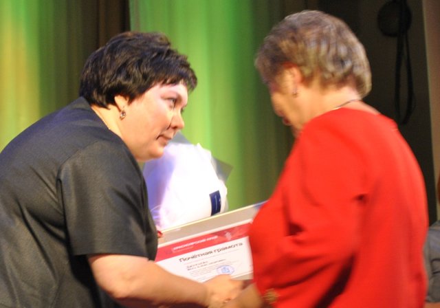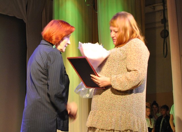 А депутат Законодательного Собрания Вера Оськина вручила награды награды краевого парламента двум учителям русского языка. Почетную грамоту получила Нина Леонтьева из школы №8 и Благодарственное письмо — ее коллега Татьяна Полежаева из школы №3.