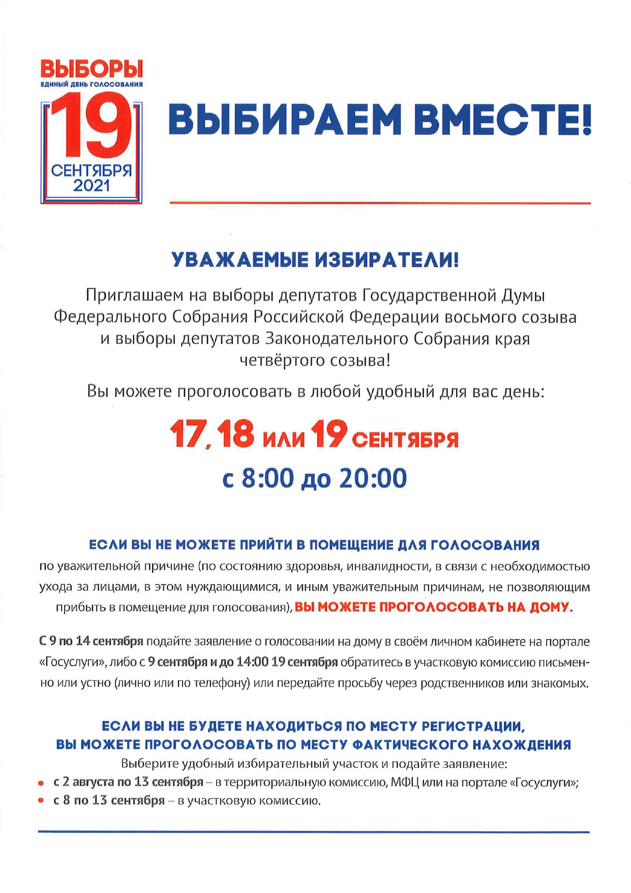 В Шарыпове организована работа 20 избирательных участков. Все они находятся на местах, уже привычных горожанам по прошлой выборной кампании. Основное новшество в том, что из-за противоковидных ограничений, чтобы не создавать излишнего скопления людей на участках, процесс голосования в этот раз продлили на три дня — 17,18 и 19 сентября. Соответственно, избиратели смогут прийти на участки в любой из этих дней, с 8 утра и до 20 часов вечера и отдать свой голос заинтересовавшему их кандидату и партии.