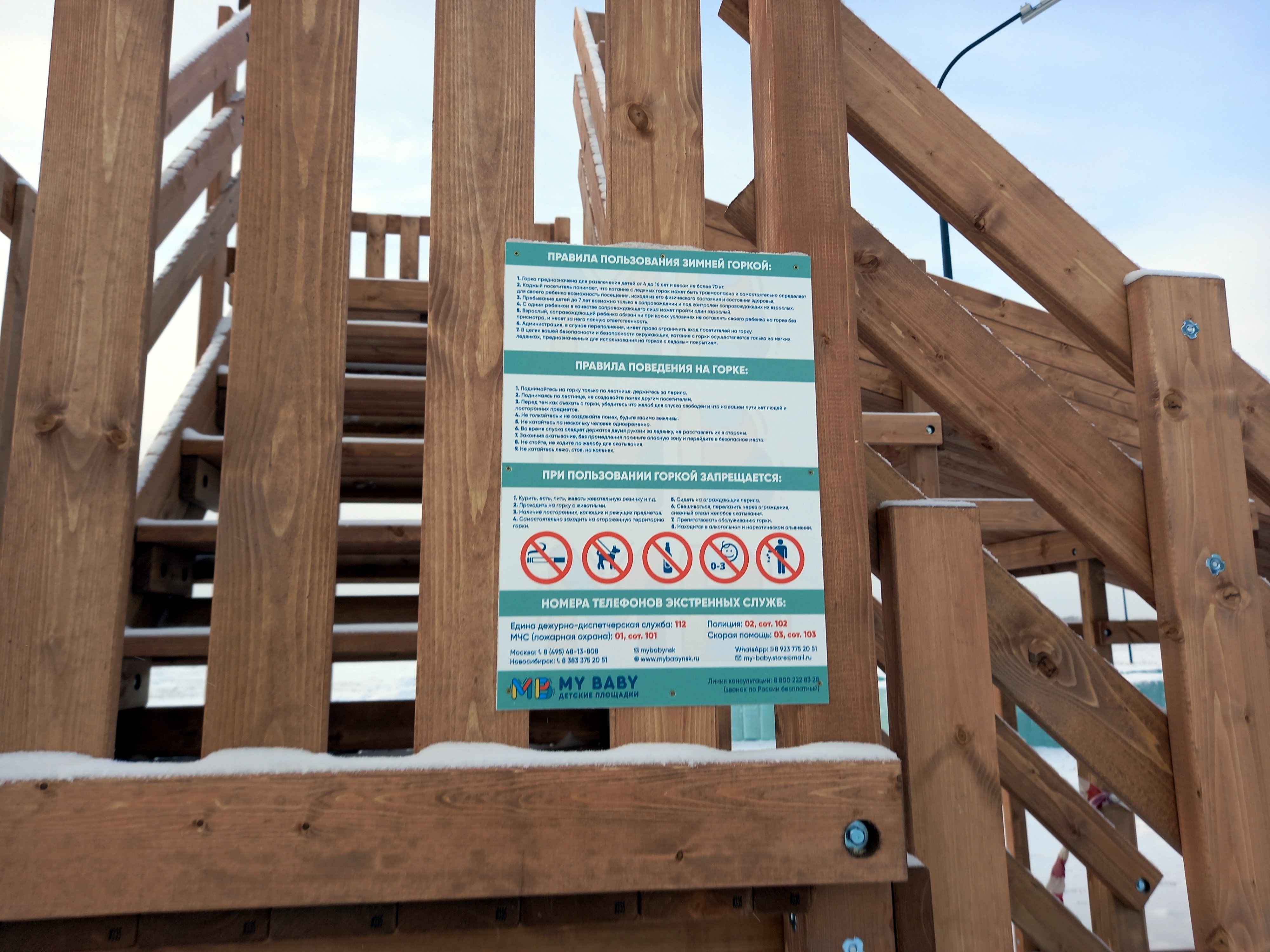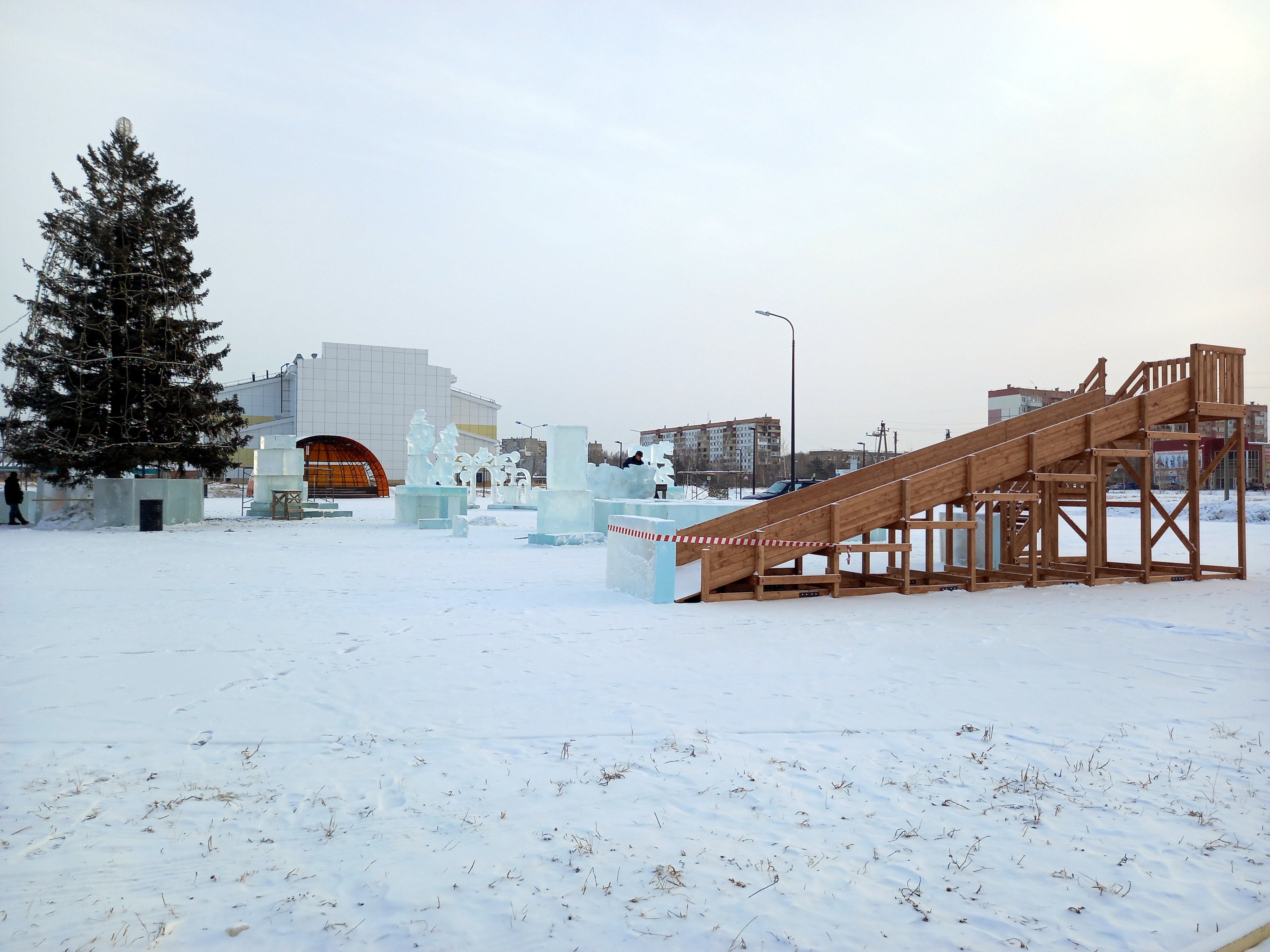 13 декабря на территории ледового городка в парке «Центральный» в Шарыпове, несмотря на все трудности, установили зимнюю горку для катания. Сделана конструкция не из льда, а из дерева, и произведена московским предприятием , имеющим необходимые сертификаты и документы в соответствии с новыми правилами Ростехнадзора.