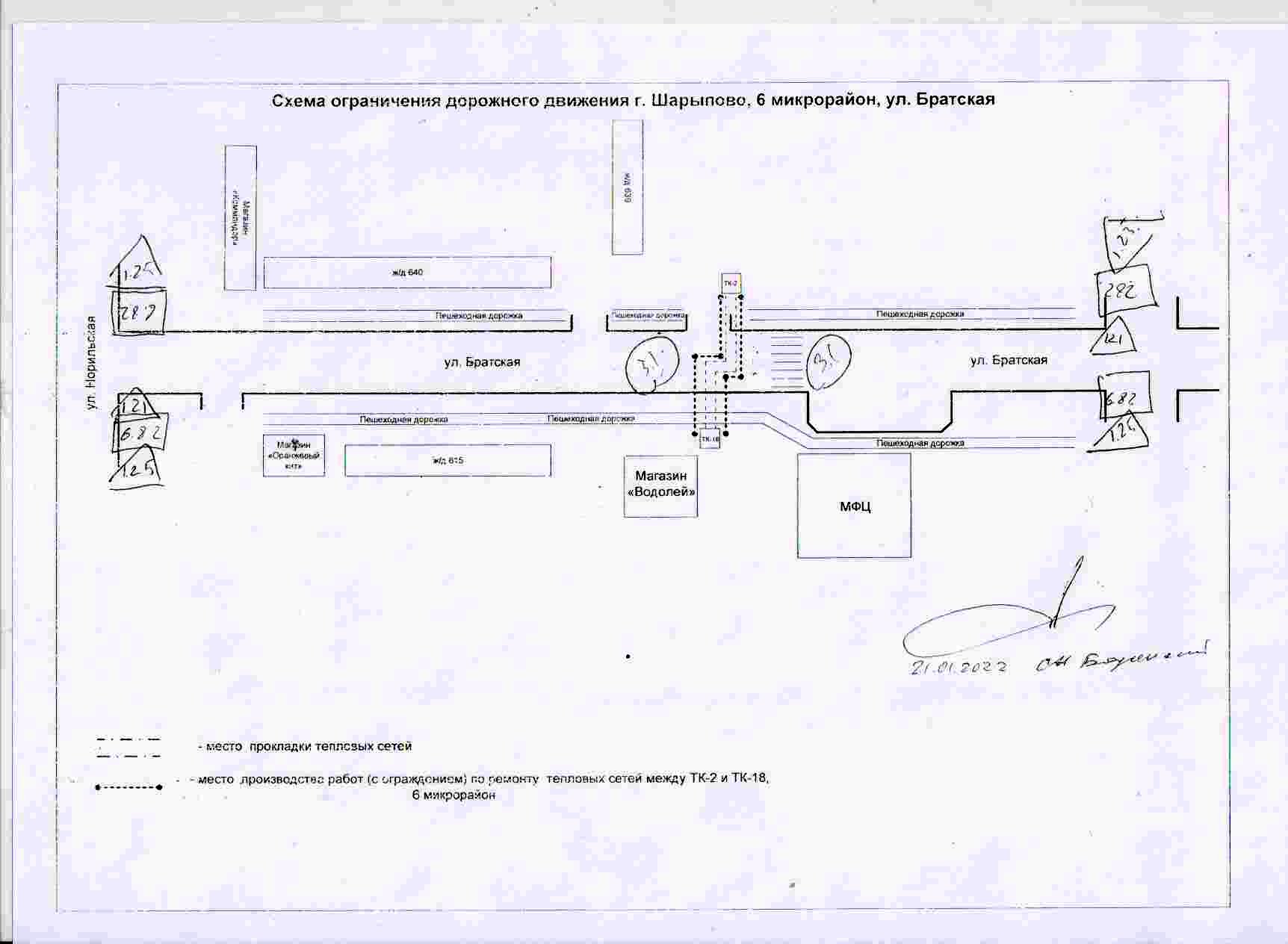 В связи с необходимостью проведения ремонтных работ на участке тепловых сетей между теплокамерой 2 и теплокамерой 18 в 6 микрорайоне г. Шарыпово с 16 часов 21 января 2022 года вводится ограничение движения по улице Братская. Ограничение планируется на срок до 17 часов 25 января 2022 года.