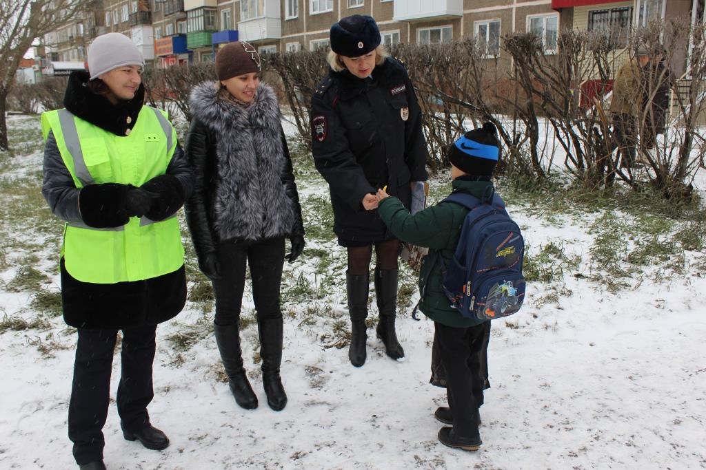 В Шарыпово «Родительский патруль» и госавтоинспекторы сопровождают школьников по маршрутам безопасности после каникул