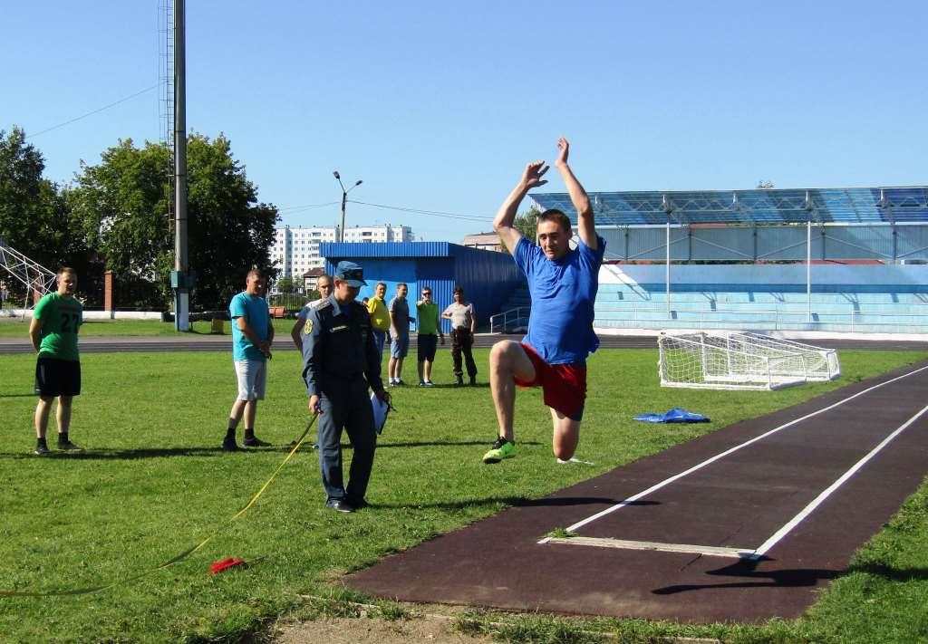 В прыжках в длину в упорной борьбе с результатом 5м 88 см победу одержал начальник караула ПЧ-47 Станислав Толстихин, второе место с результатом 5м 82см завоевал начальник караула ПЧ-47 Алексей Сергеенко, третье место с результатом 5м 62 см досталось пожарному ООО ПАСС «Сирена» Пъянков С.. На стометровке первое и второе место поделили начальник караула ПЧ-47 Сергеенко А. и пожарный ПЧ-47 Осерцов Д. третье место досталось пожарному ООО ПАСС «Сирена» Кошкину А..