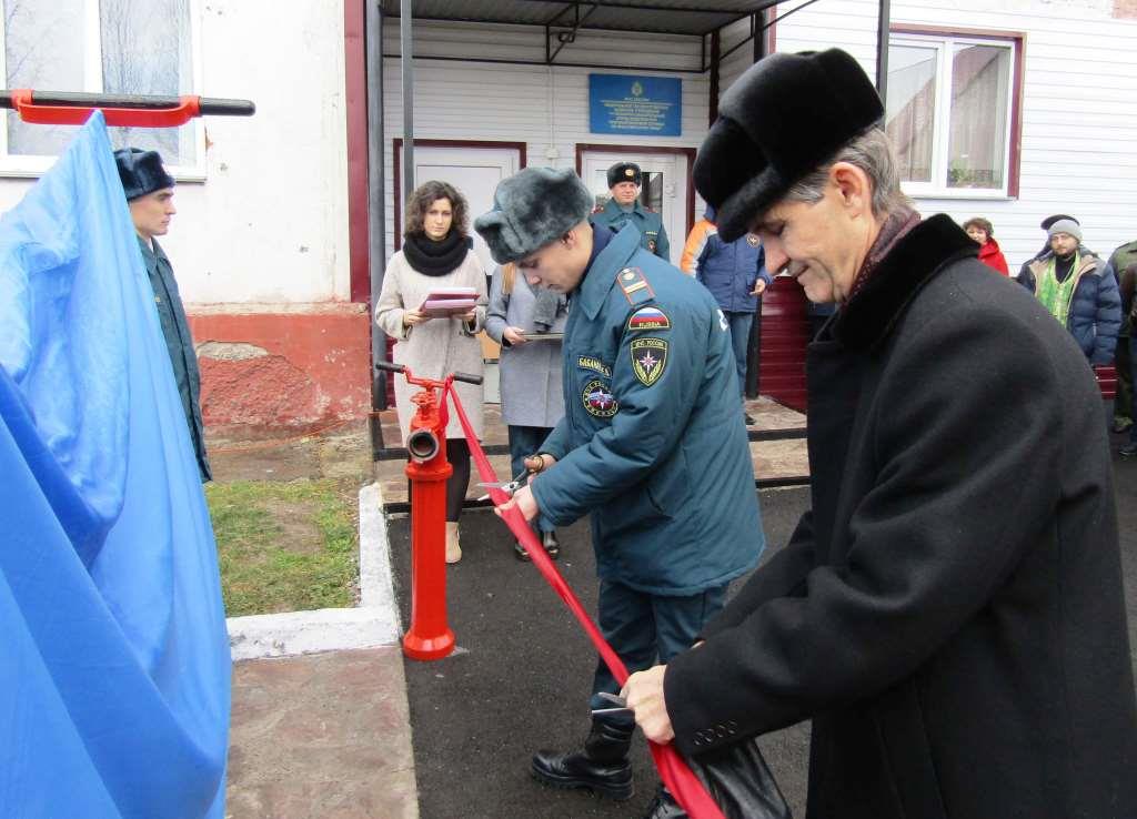 Честь разрезать красную ленточку, и открыть монумент было доверено заслуженному ветерану пожарной охраны, председателю Совета ветеранов 11 отряда полковнику внутренней службы в отставке Василию Коваль, а также молодому пожарному 47 пожарной части младшему сержанту внутренней службы Егору Бабанакову.
