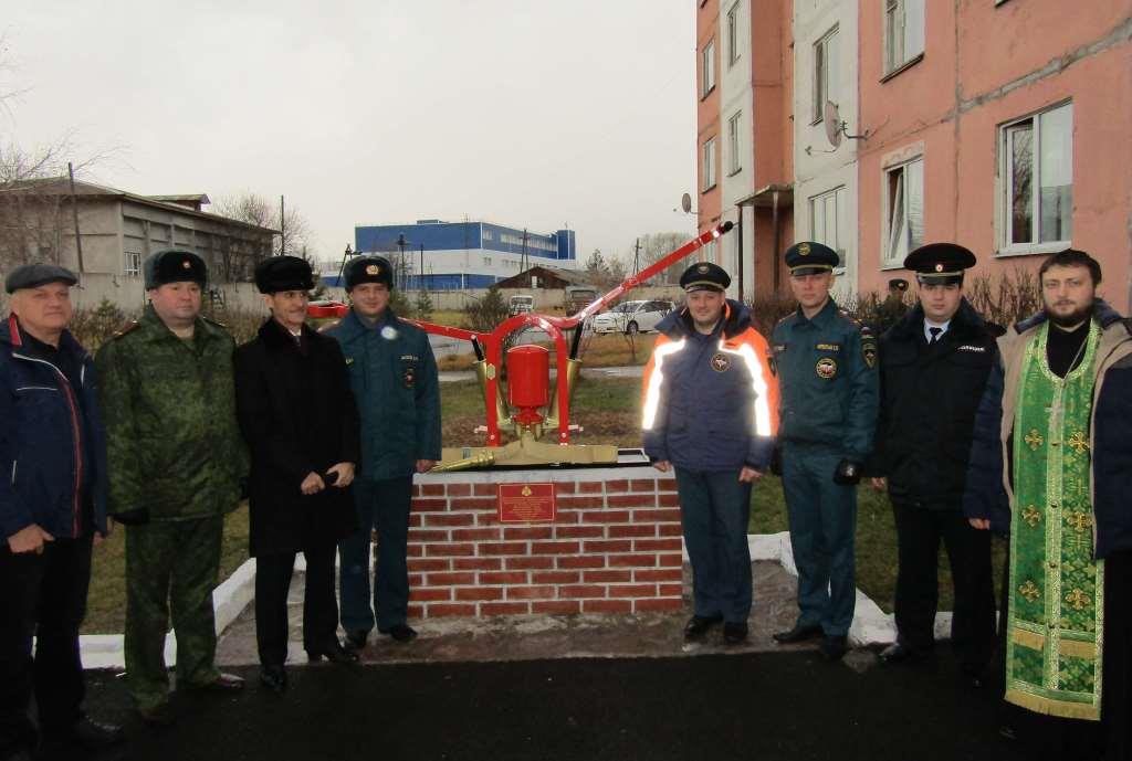 Митинг посвященный торжественному мероприятию открыл Алексей Богданов который сказал что такие монументы память о прошлом, а помня о прошедшем, мы с уверенностью можем двигаться в будущее. После церемонии открытия памятник осветил штатный священнослужитель Свято-Троицкого собора г. Шарыпово, иерей Василий Поповский. Завершил митинг начальник 11 отряда Владимир Шмелев словами мы надеемся, что теперь все жители и гости города Шарыпово получили возможность по достоинству оценить этого заслуженного борца с пожарами, служившего верой и правдой бойцам с огненной стихией!