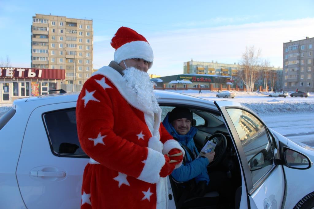 В Шарыпово «Патруль Деда Мороза» напомнил участникам дорожного движения о важности использования световозвращающих элементов