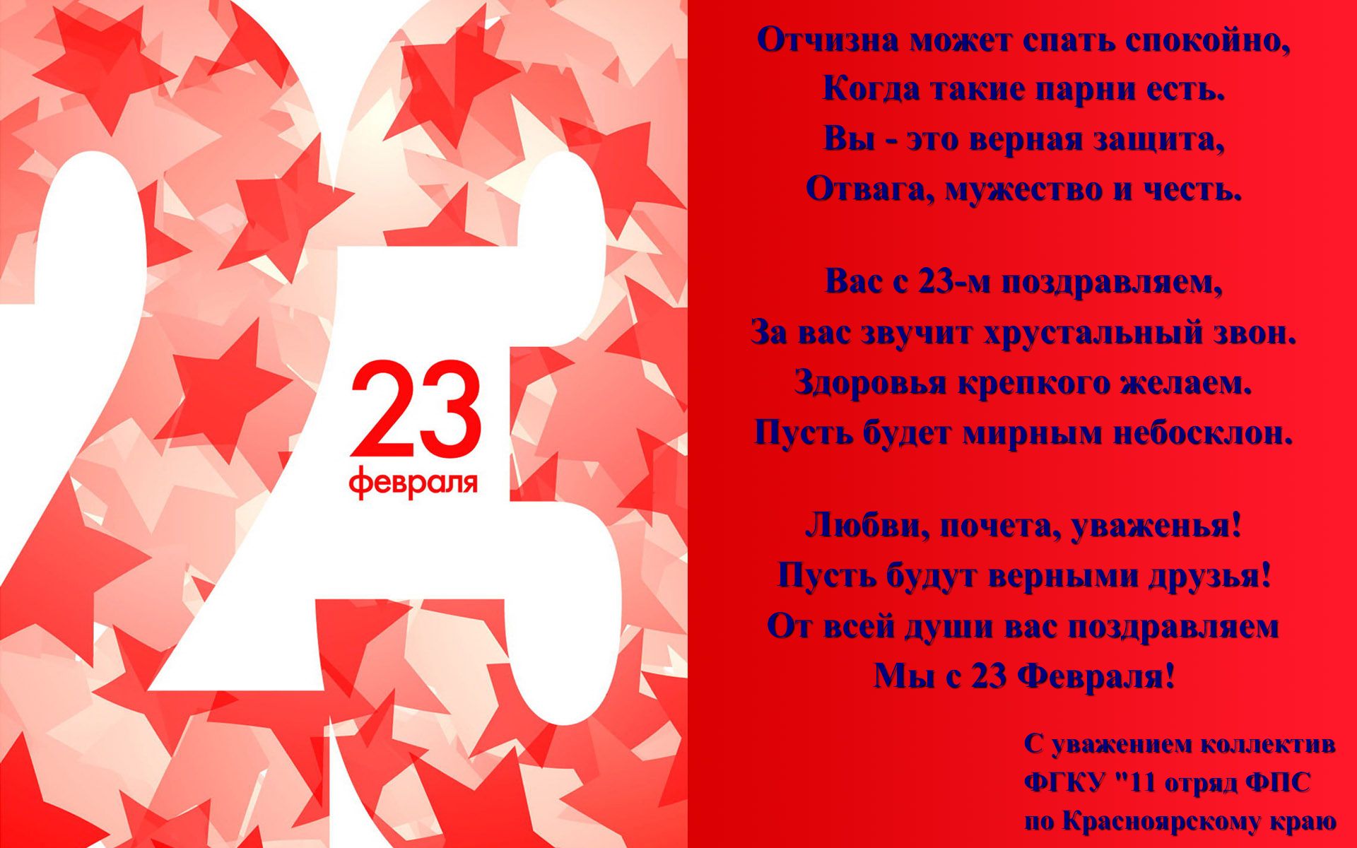 Поздравление с Днем защитника Отечества от коллектива ФГКУ "11 отряд ФПС по Красноярскому краю"