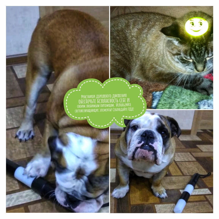 Автоинспекторы разместили фотографии со своими питомцами в сети Интернет призывая участников дорожного использовать световозвращающие элементы, для того чтобы обеспечить безопасность пешехода и животного во время прогулок в темное время суток.