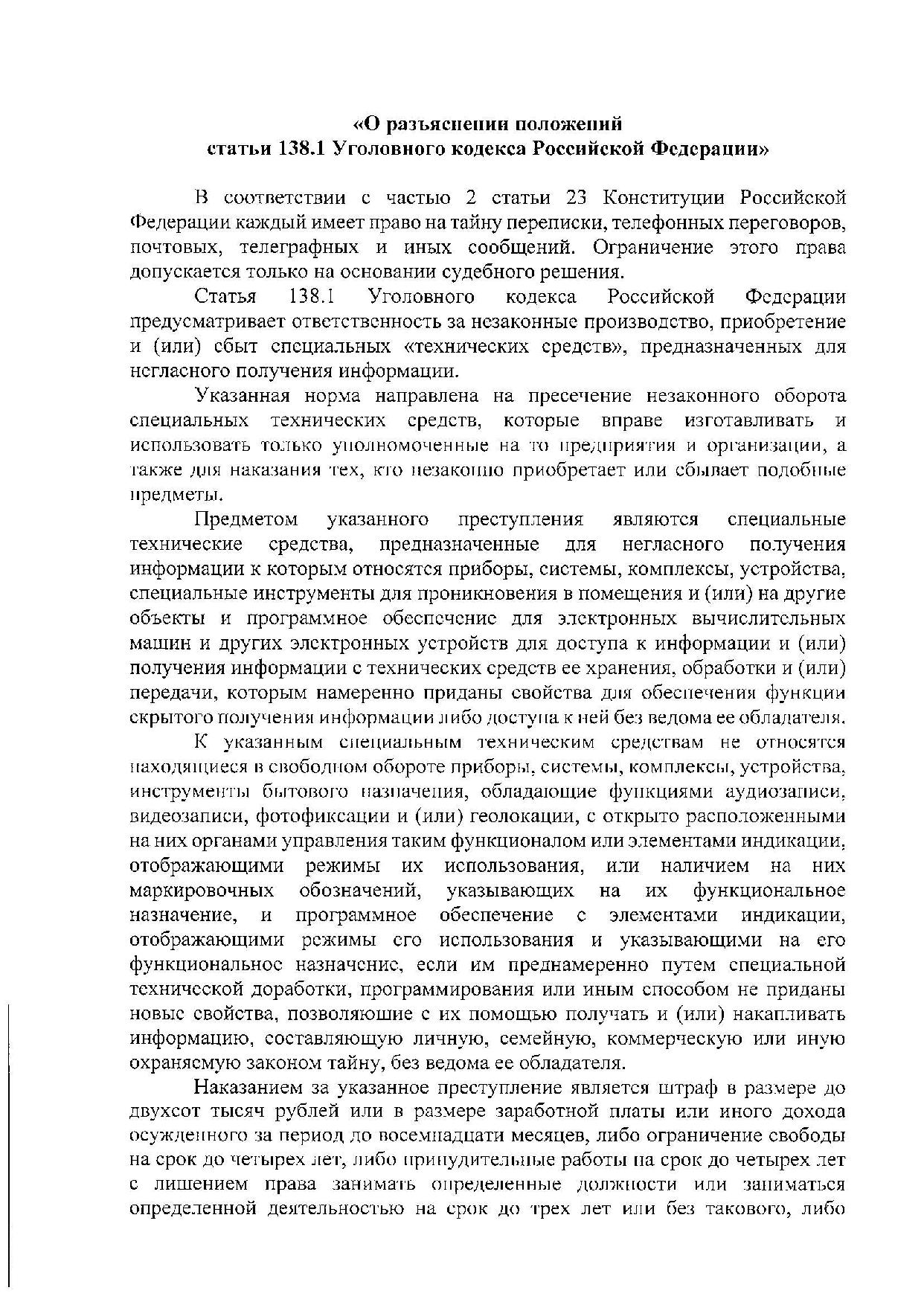 О разъяснении положений статьи 138.1 Уголовного кодекса Российской Федерации