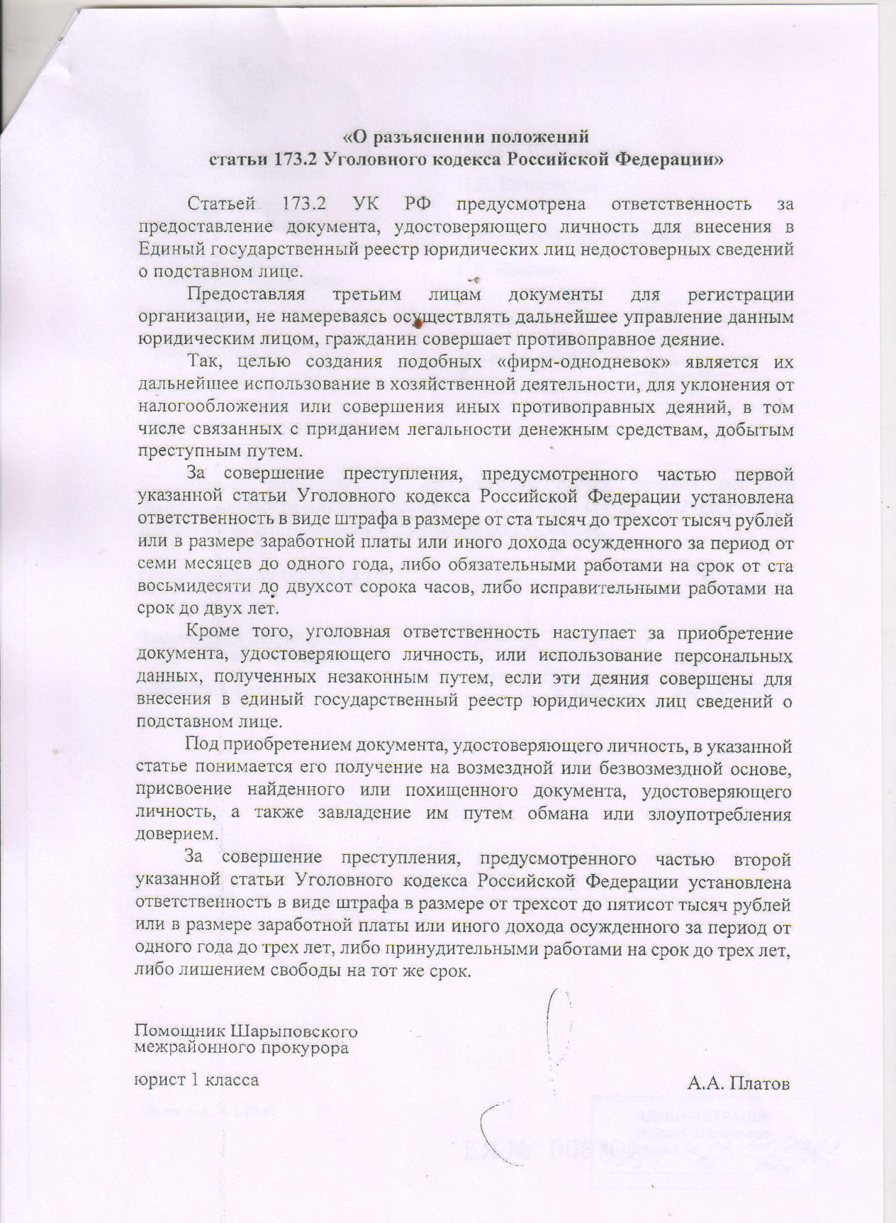 О разъяснении положений статьи 173.2 Уголовного кодекса Российской Федерации