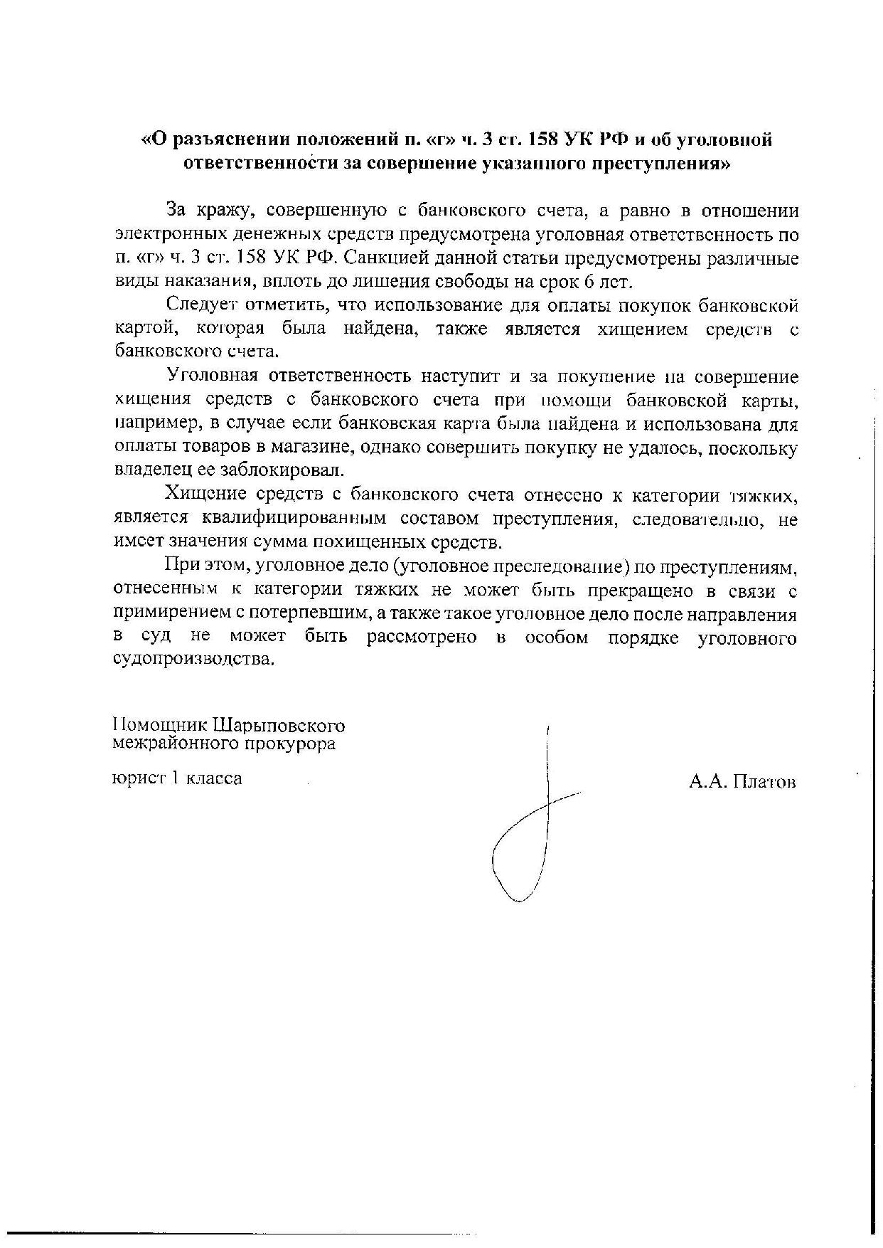 "О разъяснении положений п."г" ч.3 ст.158 УК РФ " и об уголовной ответственности за соврешение данного преступления"