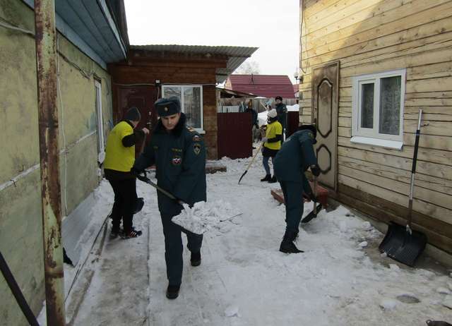 Волонтеры и МСЧ помогают ветеранам очисить дворы от снега