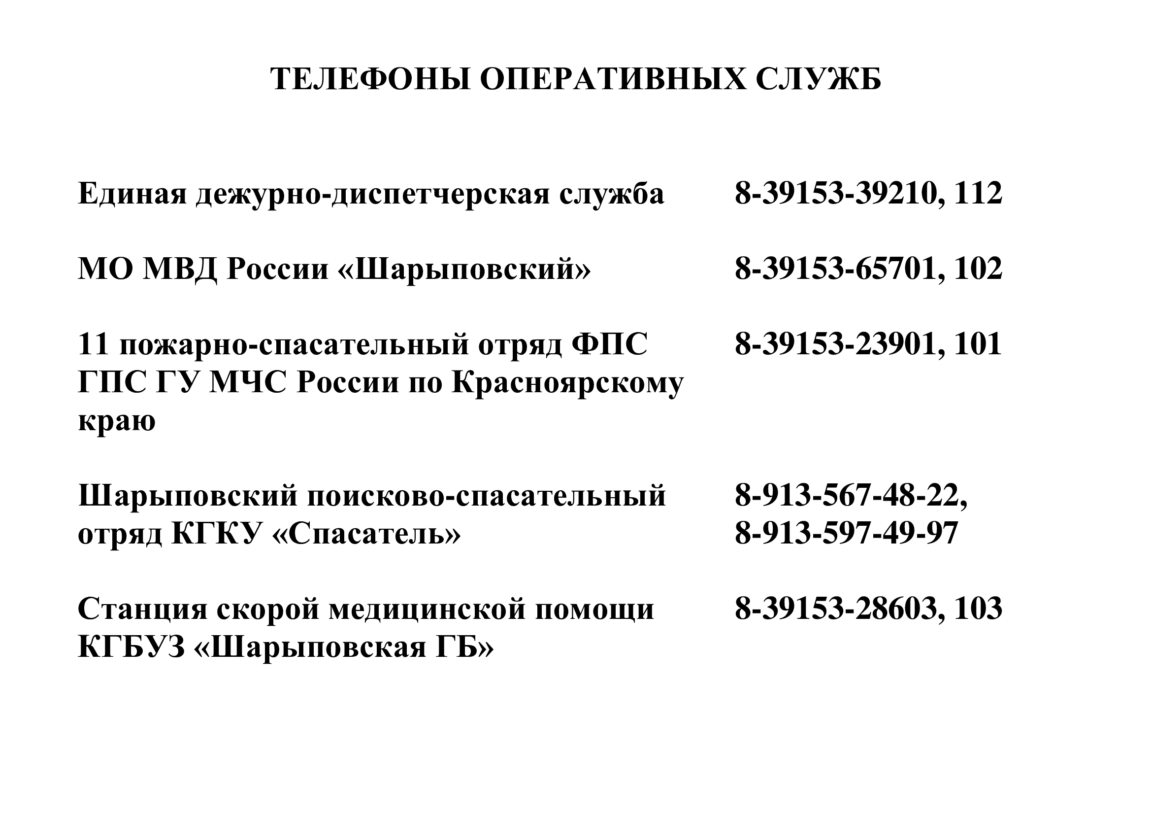 Телефоны оперативных служб для обращений граждан в паводковый период