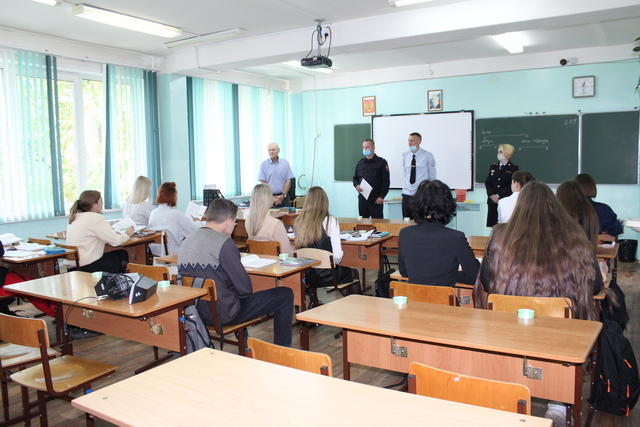 Начальник отделения по работе с личным составом Борис Шабанов, специалист отделения по работе с личным составом Андрей Сазонов и старший юрисконсульт Ольга Агеева рассказали ребятам, как организована работа в сфере профессиональной служебной и физической подготовки в органах внутренних дел и какие основные требования предъявляются к кандидатам при поступлении на службу, представили перечень образовательных организаций системы МВД России и рассказали об условиях поступления в них.