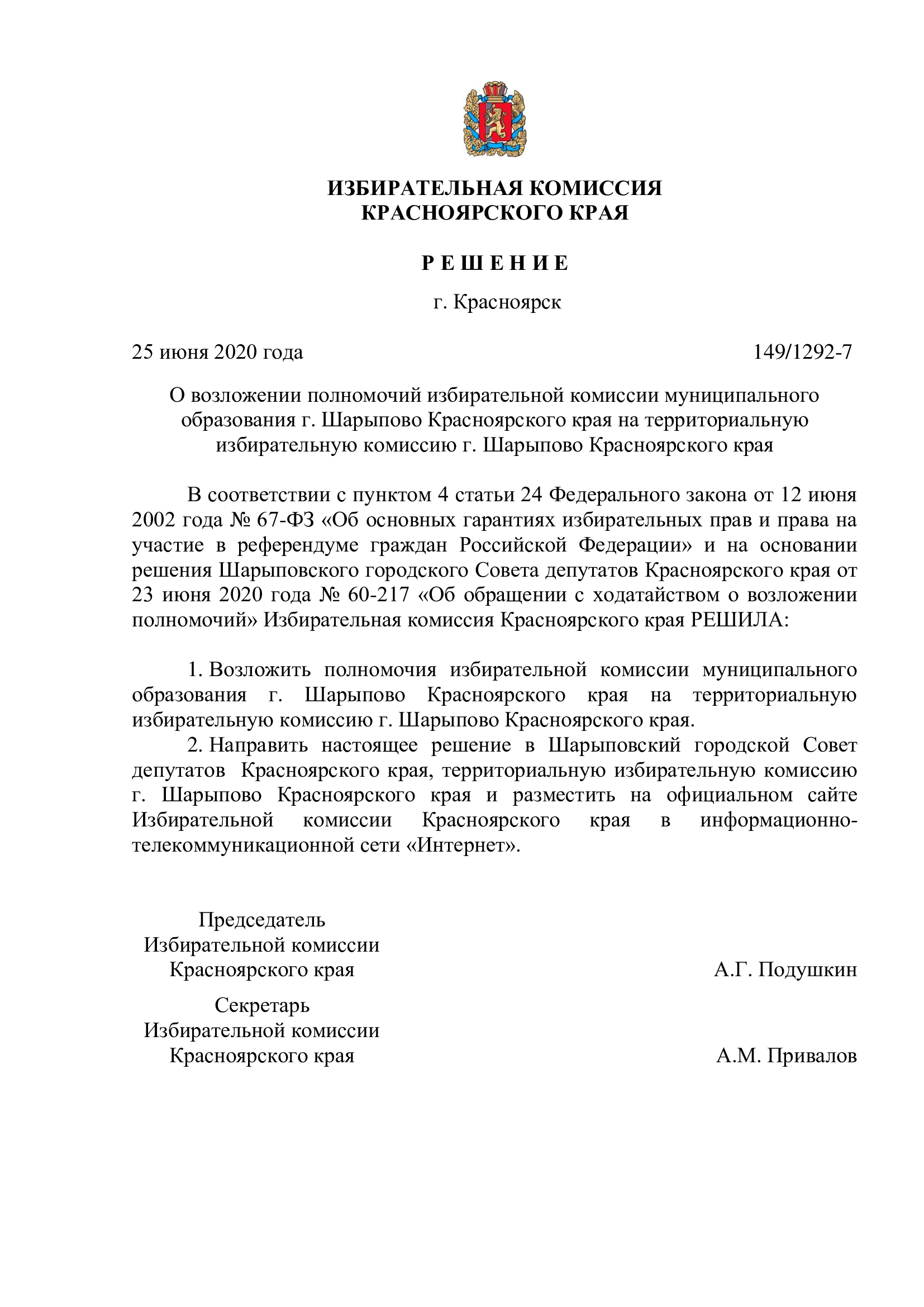 "О возложении полномочий избирательной комиссии муниципального образования г. Шарыпово Красноярского края на территориальную избирательную комиссию г. Шарыпово Красноярского края "