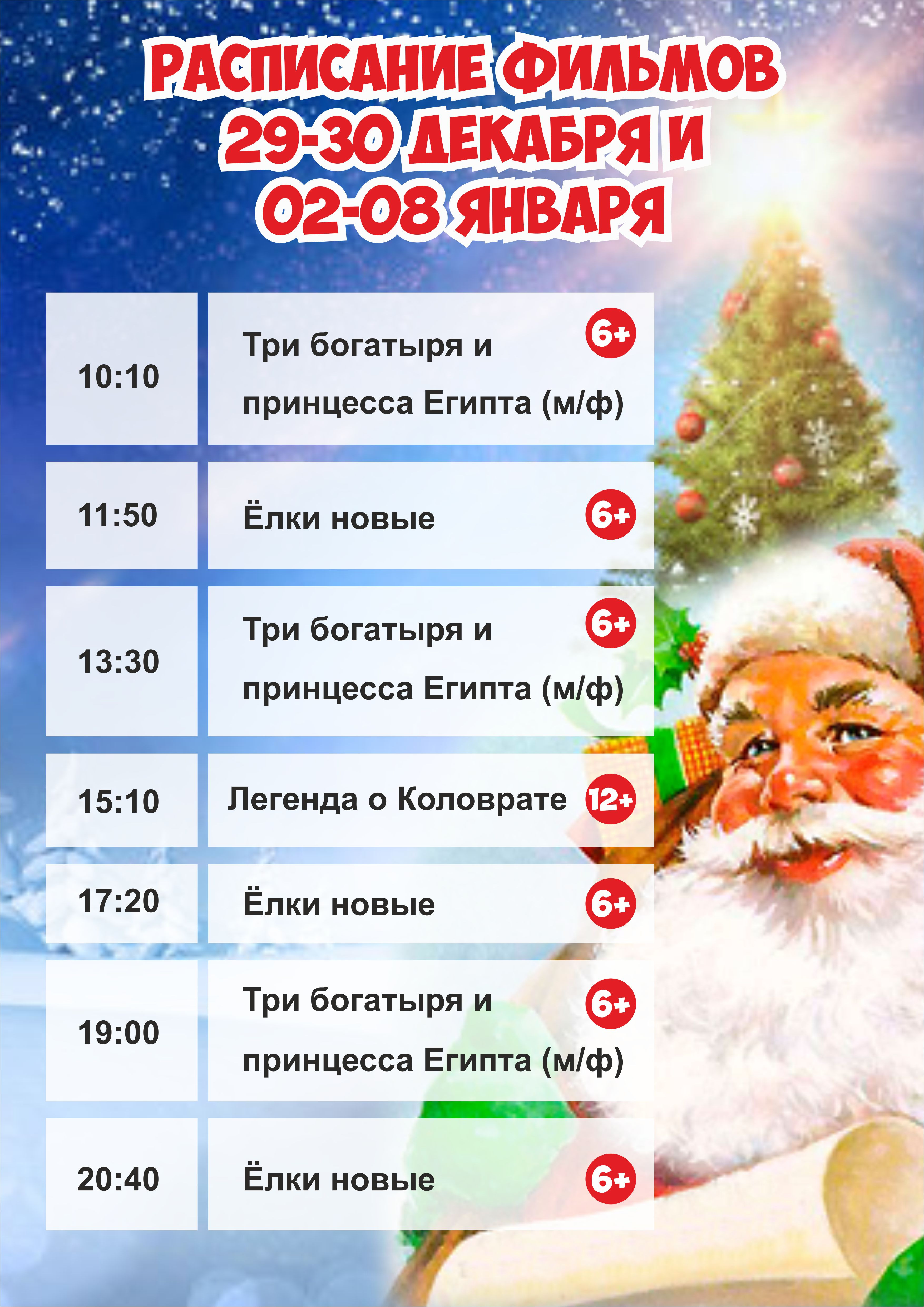 Расписание киносеансов в ДК г.Шарыпово на 29-30 декабря 2017 и 02-08 января 2018г.