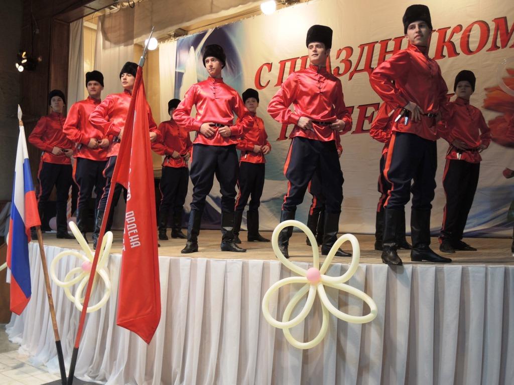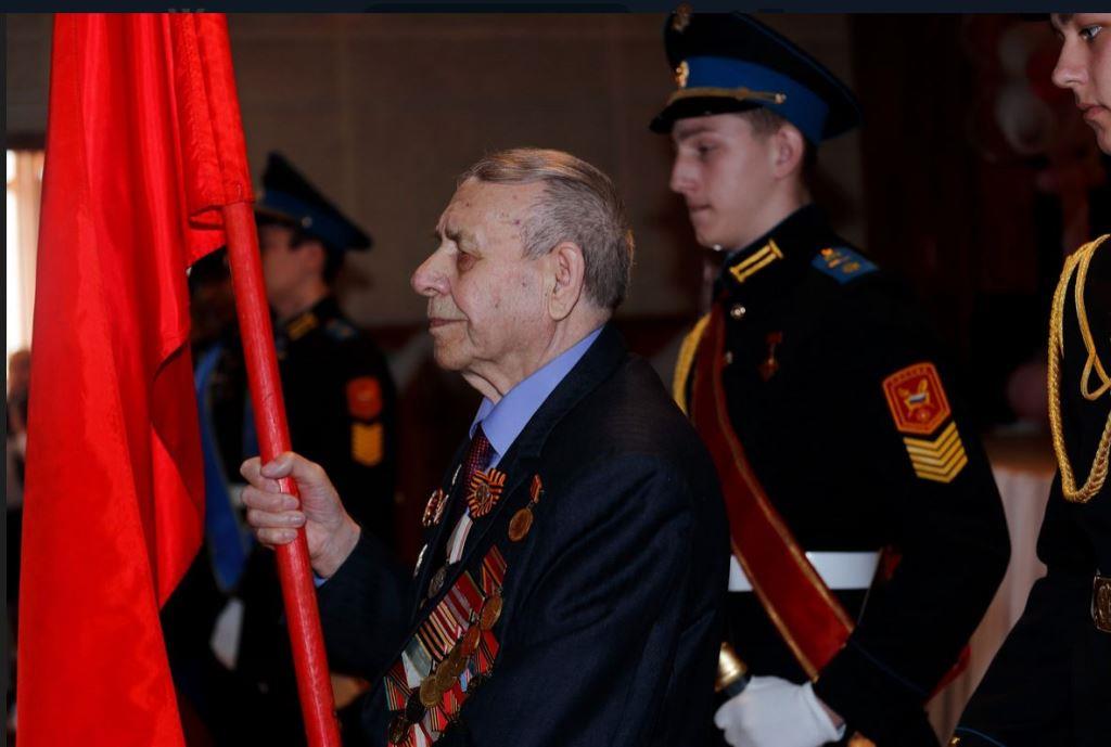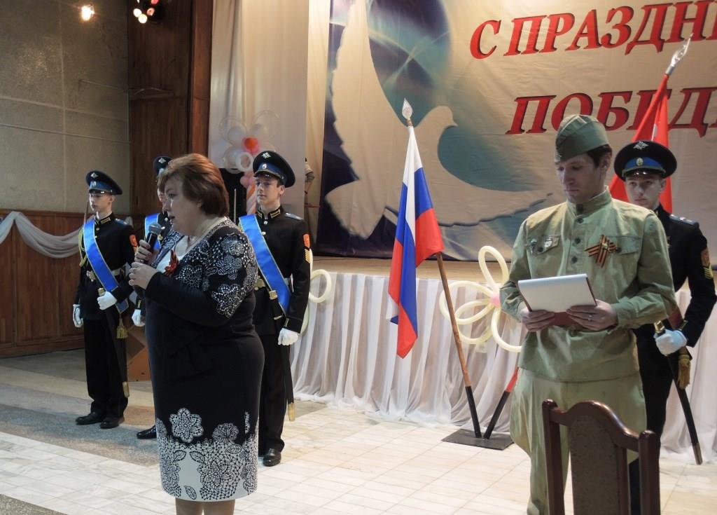 Копию Знамени Победы в зал ЦКиК торжественно  внес фронтовик, танкист Петр Константинович Иванов в сопровождении воспитанников шарыповского кадетского корпуса. За честь нести знамя вместе с ветераном ребята борются весь год, добиваясь успехов в учебе, строевой подготовке и общественной деятельности. А работники культуры города приготовили для гостей праздника свои лучшие концертные номера.