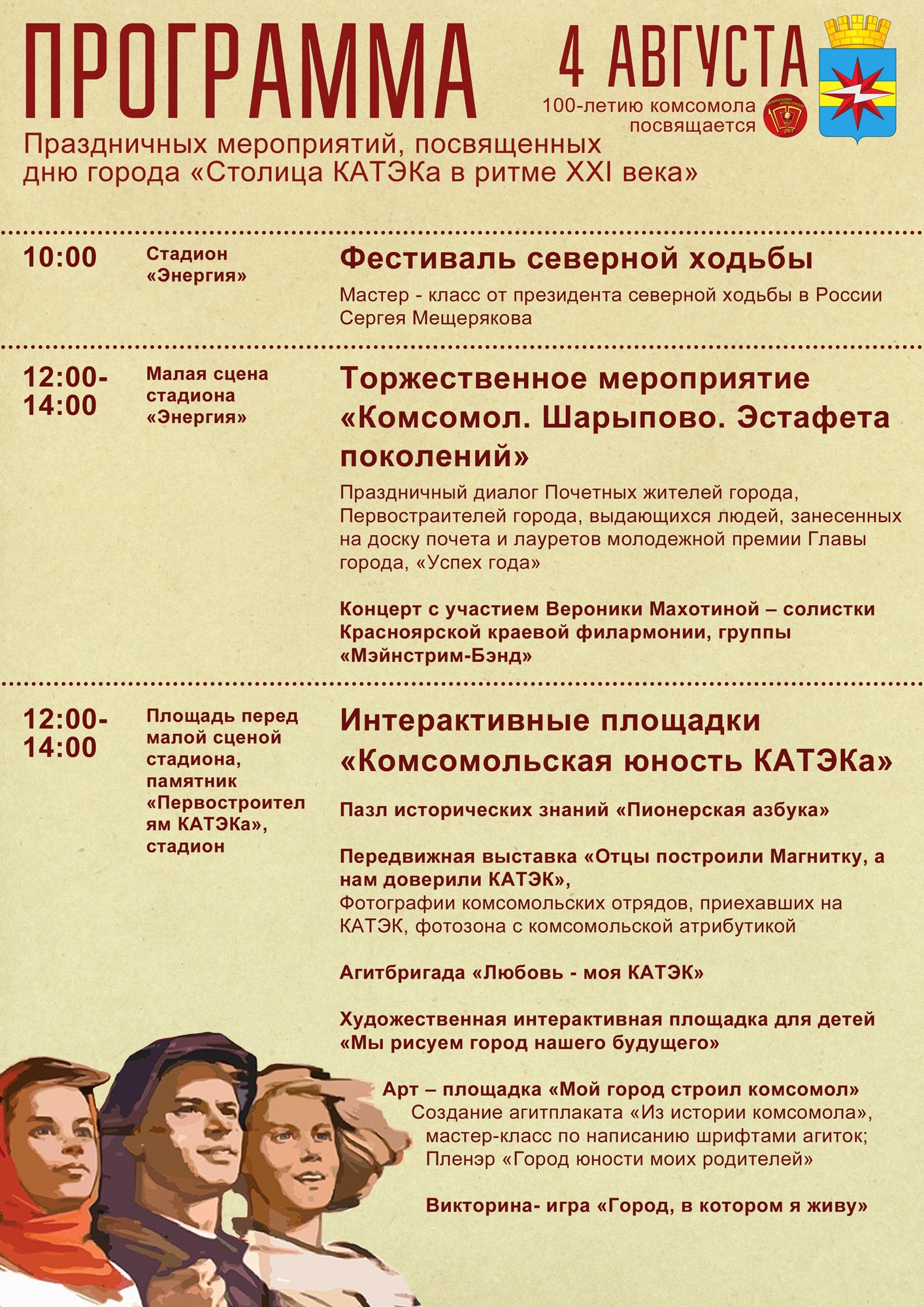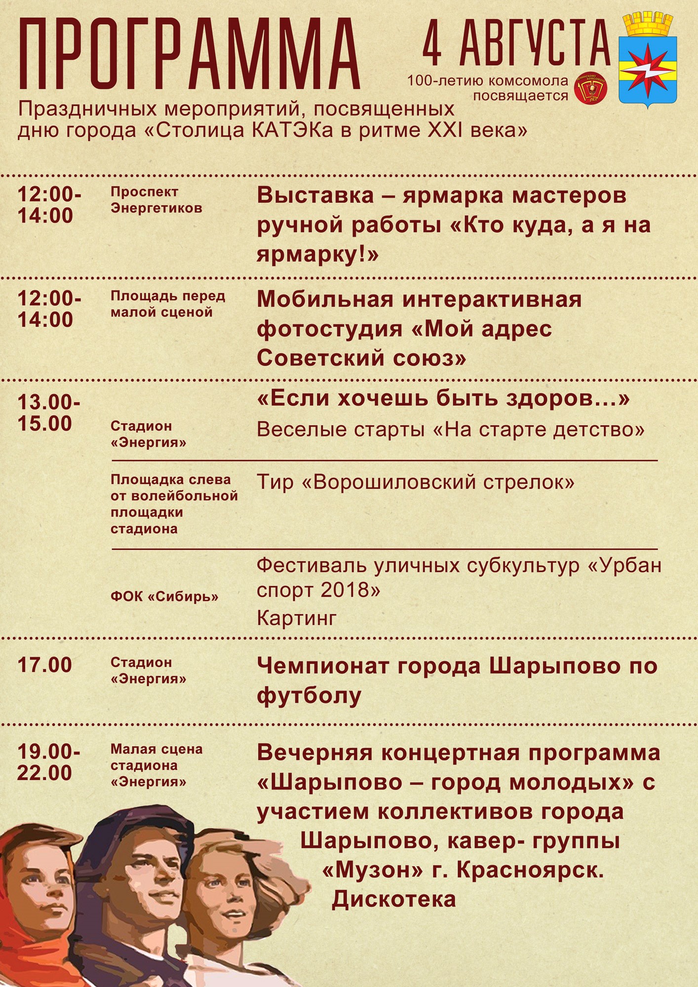 Афиша мероприятий на День города, 4 августа 2018 г.
