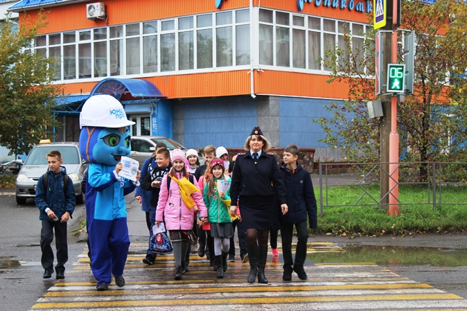 Символ  социальных проектов ПАО «Юнипро»– ростовая кукла «Юнипрошка» в игровой манере учил малышей безопасно вести себя рядом с автодорогами.  Сотрудники ГИБДД вместе с Юнипрошкой провожали  первоклассников по маршруту из школы до дома и объясняли малышам правила перехода проезжей части.