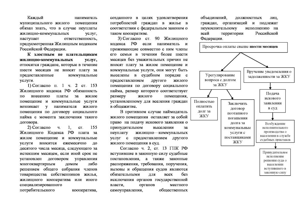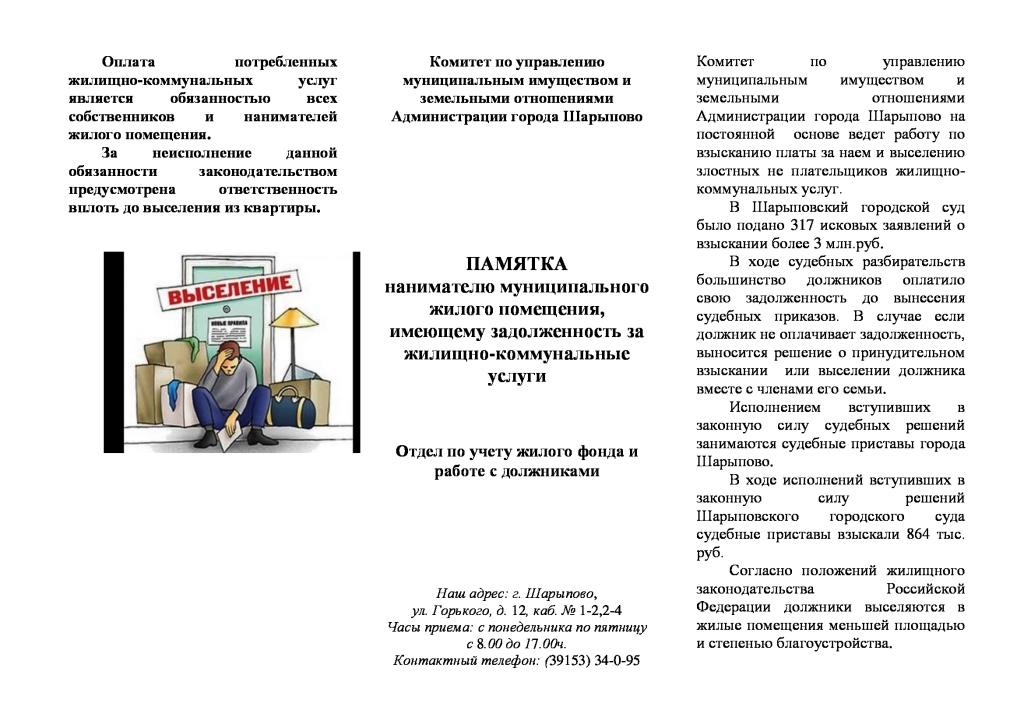 Памятка нанимателю муниципального жилого помещения, имеющему задолженность за жилищно-коммунальные услуги
