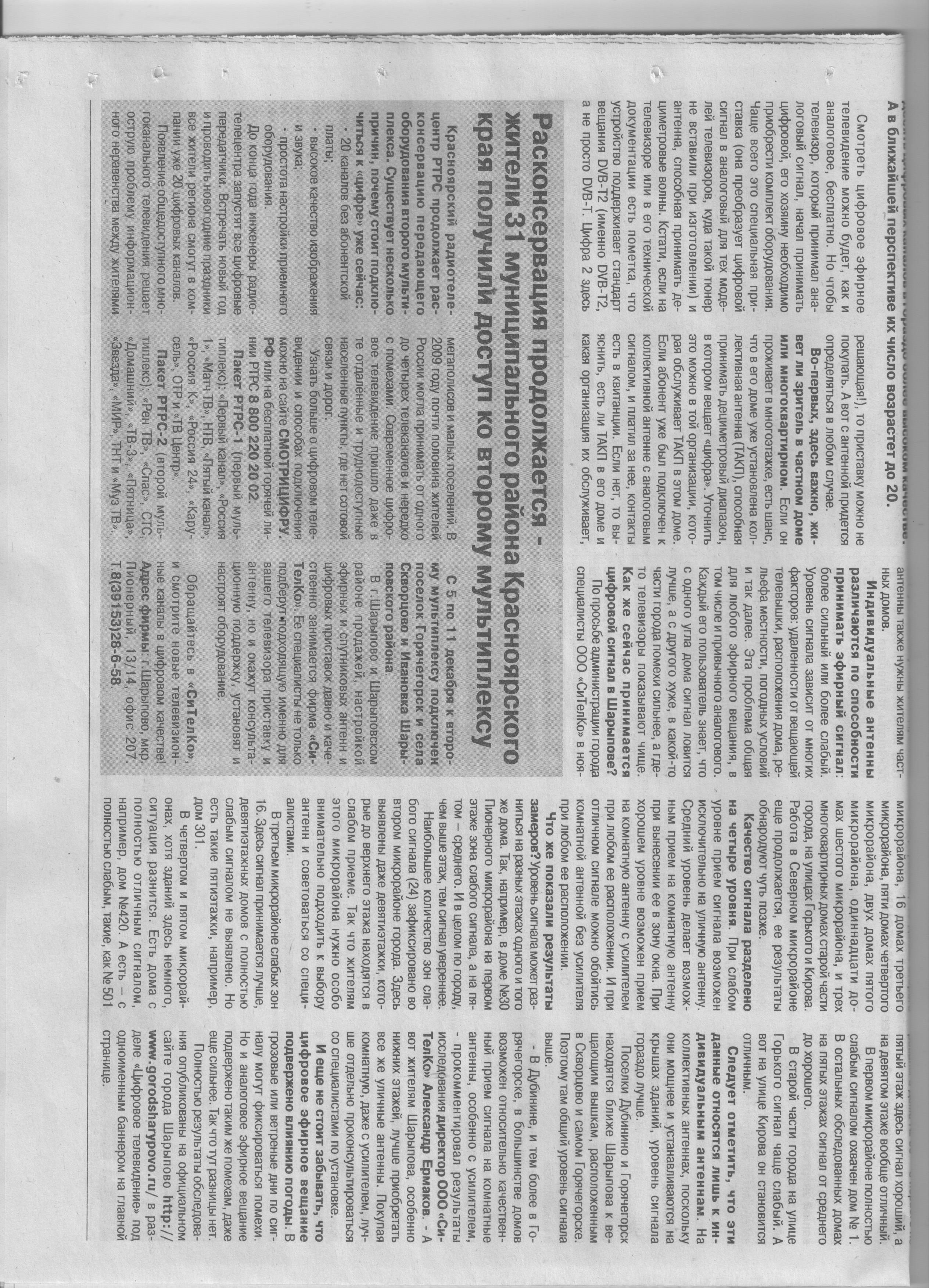 - Расконсервация продолжается (газета "Огни Сибири", от 12.12.2018 г. №50)