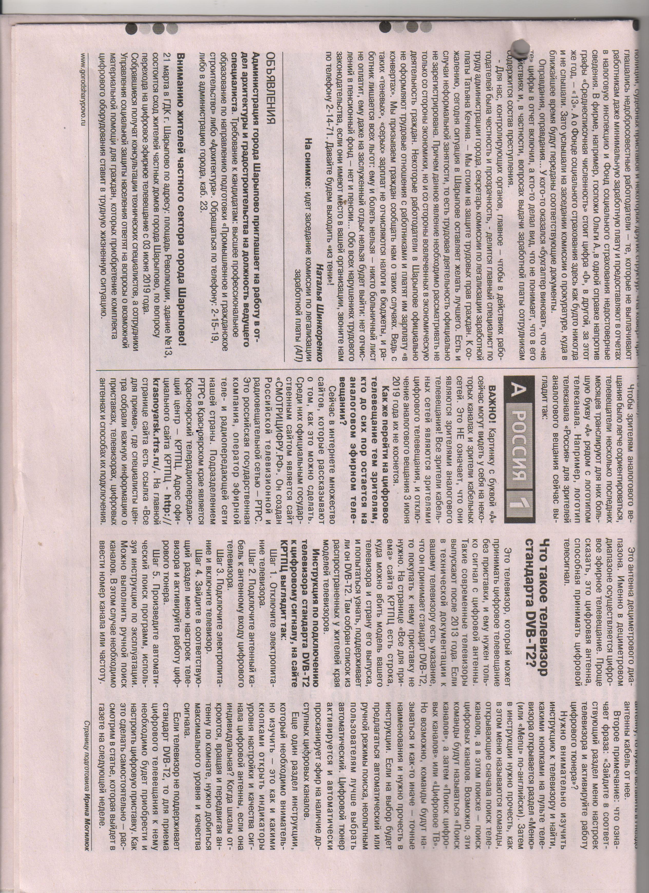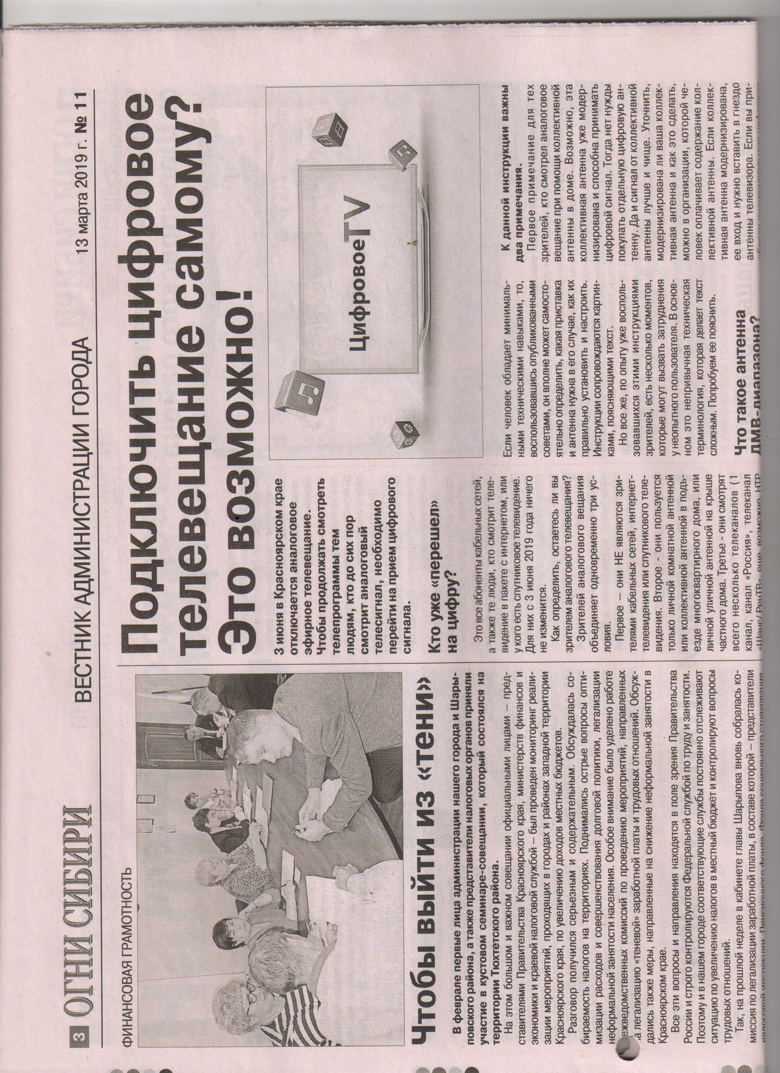- Подключить цифровое телевидение самому? Это возможно (газета "Огни Сибири", №11 от 13.03.2019)