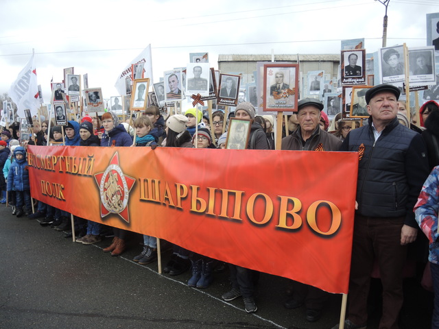 В Шарыпове 9 мая на площади перед стадионом «Энергия» с 10.00 начнется построение колонны «Бессмертного Полка», а также колонны из представителей городского актива и общественных организаций. В этом году колонна «Бессмертного полка» откроет шествие. Согласно уставу этого движения, которое захватывает собой уже десятки миллионов людей во всей России, «Бессмертный Полк» - это гражданская, абсолютно добровольная, неполитическая и некоммерческая акция, на которой невозможно присутствие никакой другой символики , лозунгов или призывов. Именно поэтому колонна «Бессмертного Полка» пройдет по проспекту Энергетиков первой.
