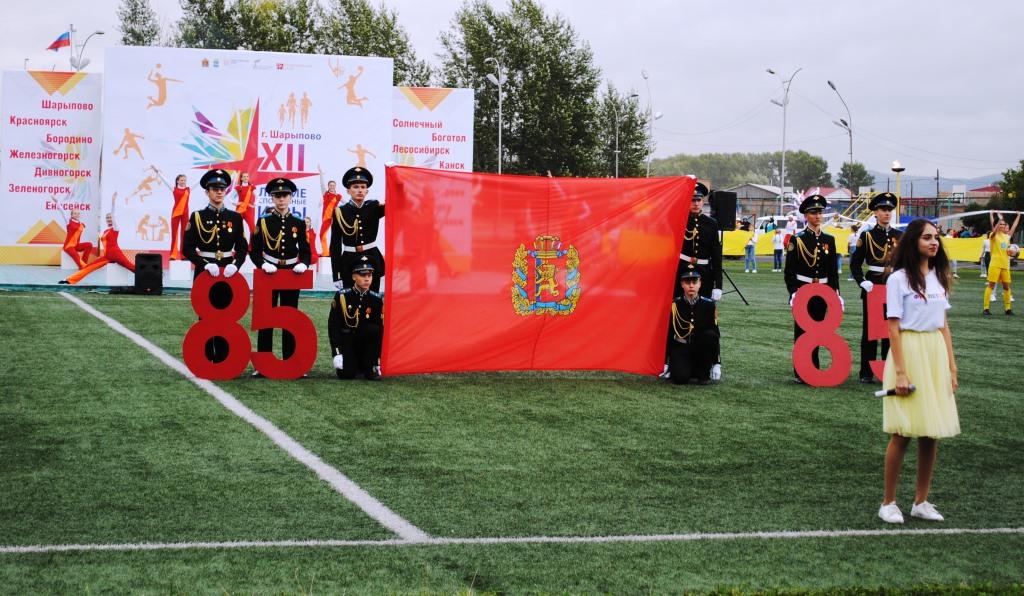 Перед трибунами стадиона , которые практически полностью заполнили зрители, прошел парад сборных 14 городов края, которые приехали на спартакиаду.Старт играм дала Первый заместитель министра спорта Красноярского края Светлана Ходюш, которая подчеркнула важность проведения этих соревнований для популяризации физкультуры и спорта, напомнила, что проходят они в юбилейный год 85-летия образования Красноярского края, пожелала всем участникам спортивной удачи и высоко оценила результат организационной работы администрации Шарыпова по подготовке города к приему гостей. Затем заместитель главы города Ачинска Алексей Бердышев передал главе Шарыпова Наталье Петровской символический кубок хозяев спартакиады.