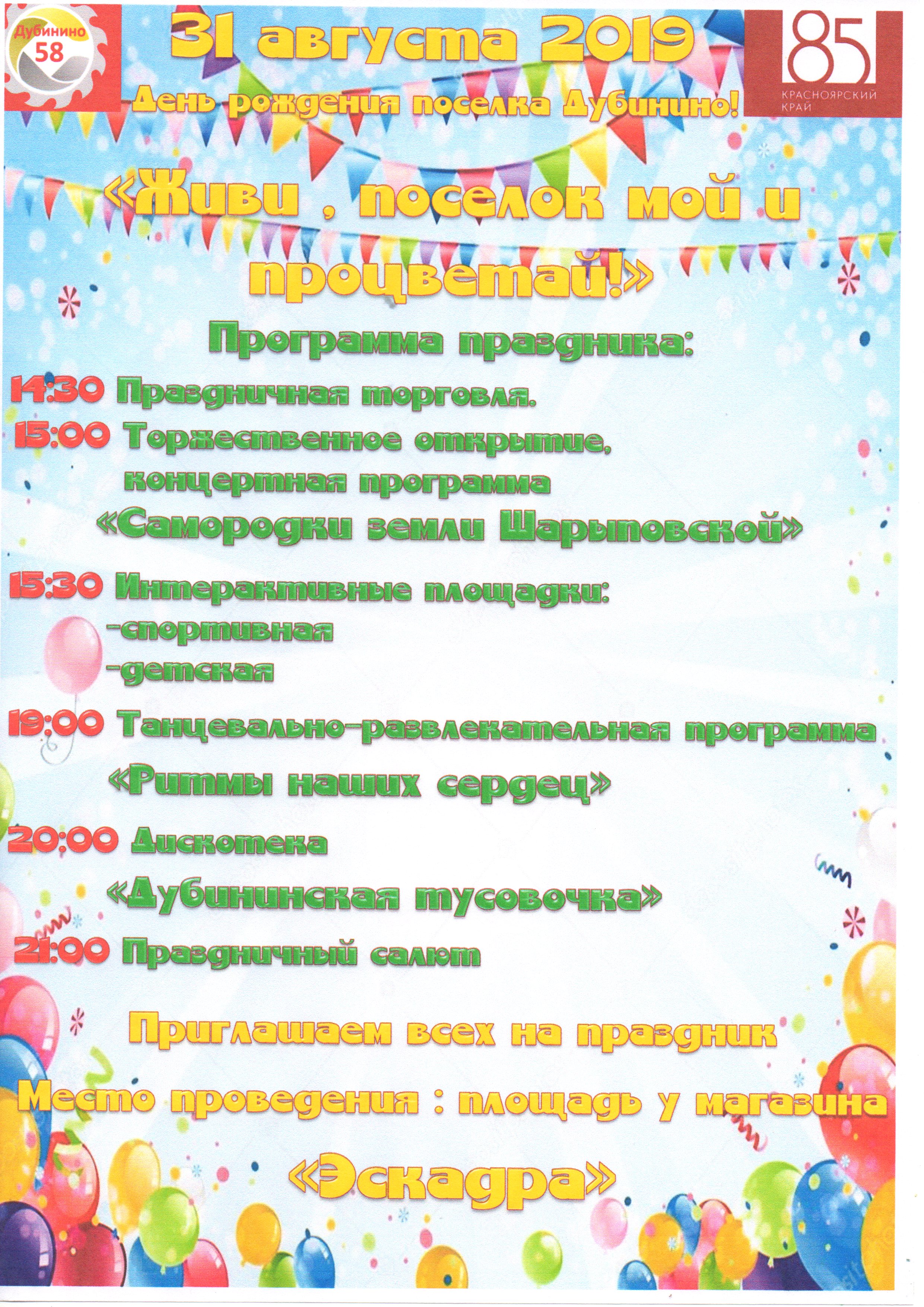 31 августа - День поселка Дубинино