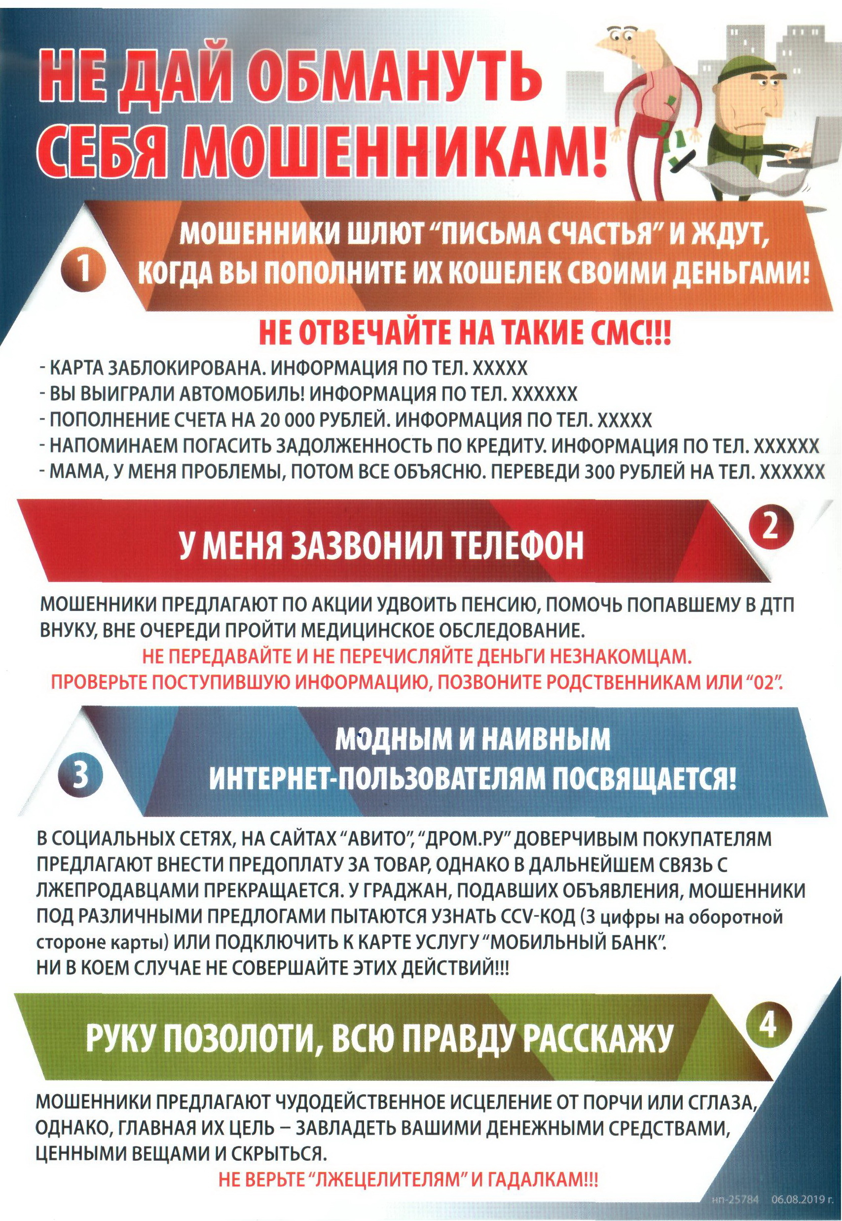 Памятка населению "Не дай мошенникам обмануть тебя!"