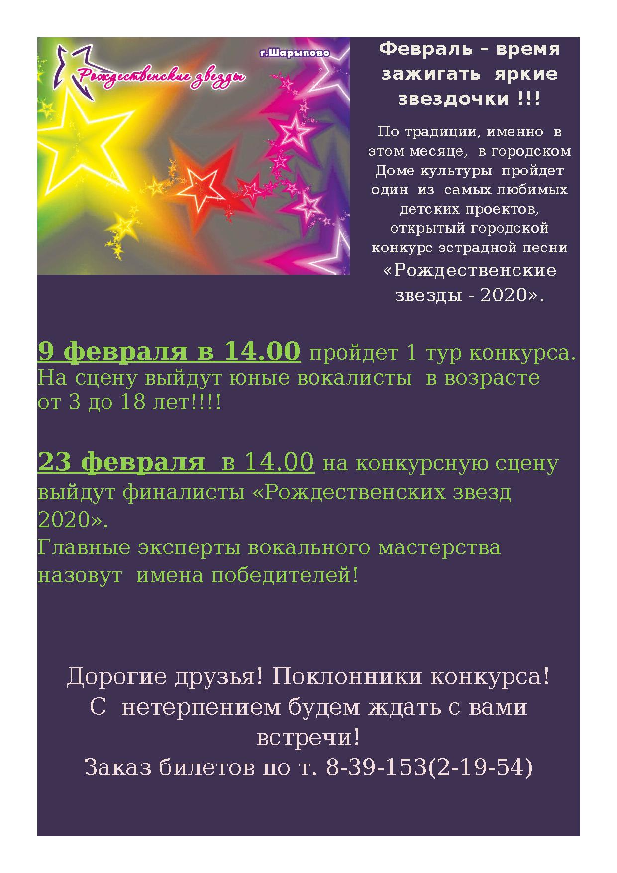 Открытый городской конкурс эстрадной песни «Рождественские звезды - 2020»