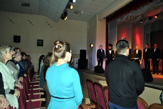 Концерт Сибирского мужского хора начался с исполнения духовных православных песнопений и продолжился песнями военных лет. Когда зазвучала «Священная война», зрители встали со своих мест, захваченные мощью и силой звучавших голосов. Затем звучали «Журавли», «Смуглянка», «Катюша», «Дороги», казачьи и народные песни фронтовых лет. А когда грянул «День Победы», зал снова встал и взорвался аплодисментами. Заместитель главы города Шарыпово Олег Пименов с букетом цветов от имени всех зрителей поблагодарил артистов за потрясающее выступление. Остается надеяться, что певцы Сибирского мужского хора еще не раз побывают в Шарыпове, потому что теперь в нашем городе у них появились десятки преданных поклонников. Которые будут с нетерпением ждать следующей встречи.
