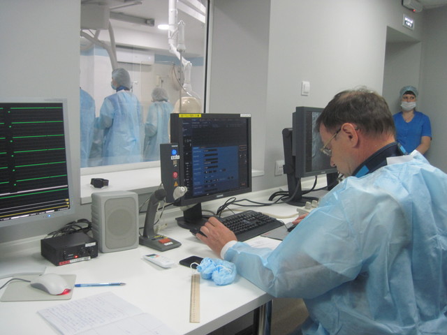 Уже обследованы несколько десятков пациентов, получивших направления от участковых терапевтов. Тем , у кого первичное обследование выявило показания к детальному обследованию сосудов сердца, Алексей Протопопов и его коллеги провели корононароангиографические обследования, когда через сосуд на руке в сердце пациента врач вводит специальный зонд, и на мониторе компьютера в увеличении наглядно видит проходимость артерий и состояние сердечной мышцы.