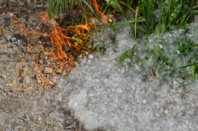 Тополиный пух – настоящая беда городов и сёл. При цветении тополей «летний снег» собирается возле сараев, цоколей деревянных домов и т.д. Горит пух быстро с выделением большого количества тепла. Сравнительно небольшое его количество способно поджечь дом, дачу и любые горючие надворные постройки в течении считанной минуты. А источником загорания может послужить непотушенный окурок или спичка, проведение огневых работ или детская шалость.